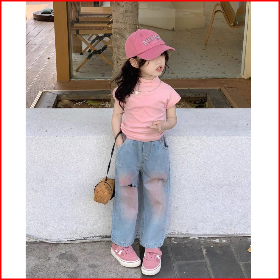 Korean Style Terbaru Fashion Baju Merah Muda T-shirt Celana Panjang Warna Pink Jeans Style Baru Anak Perempuan Setelan M