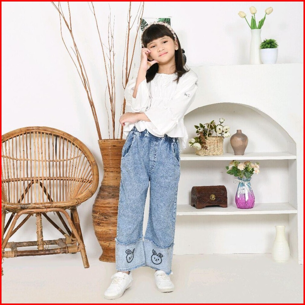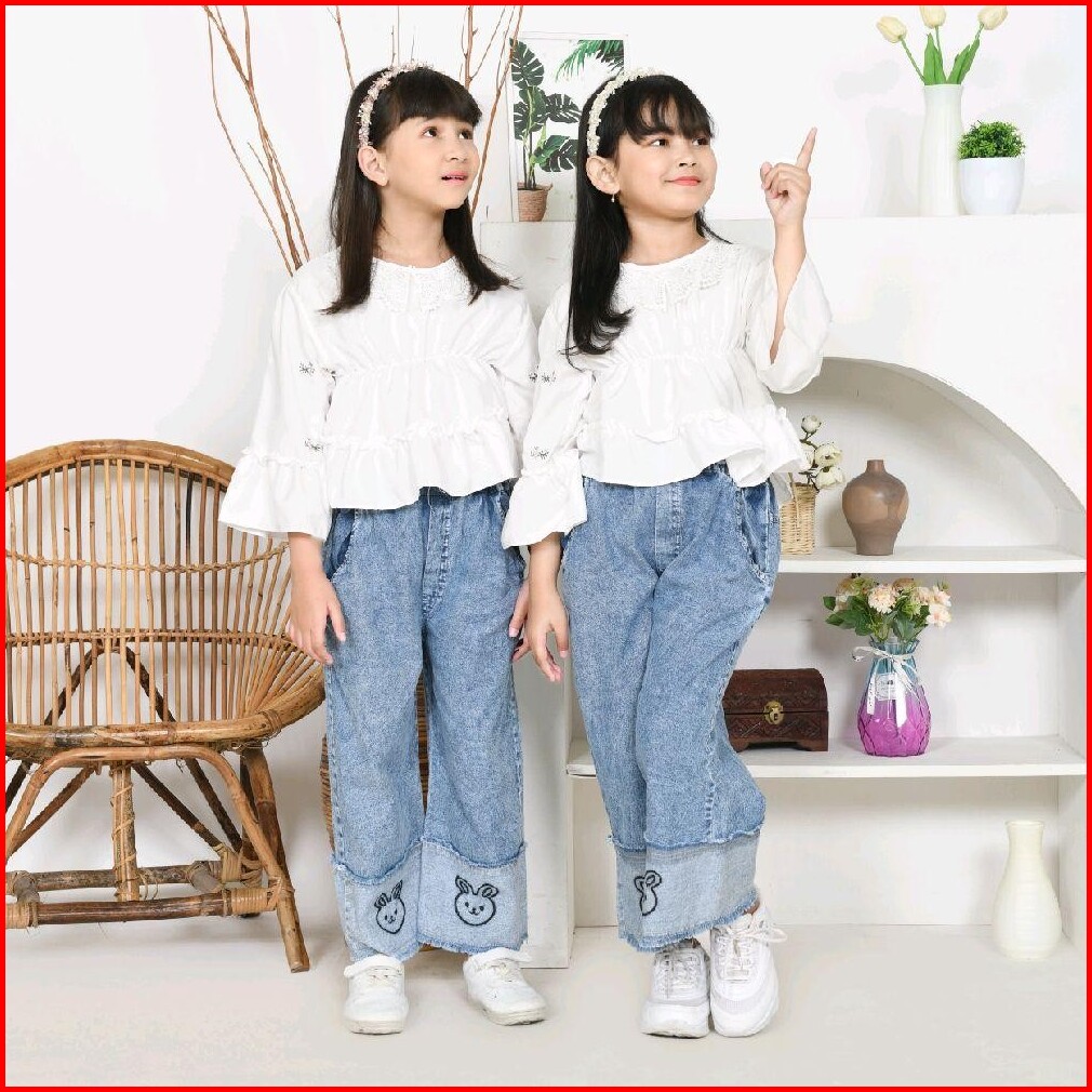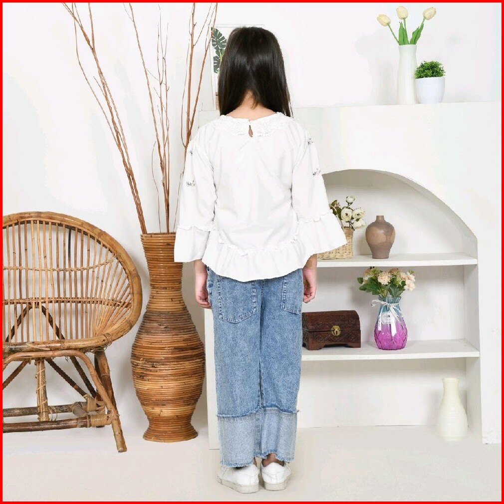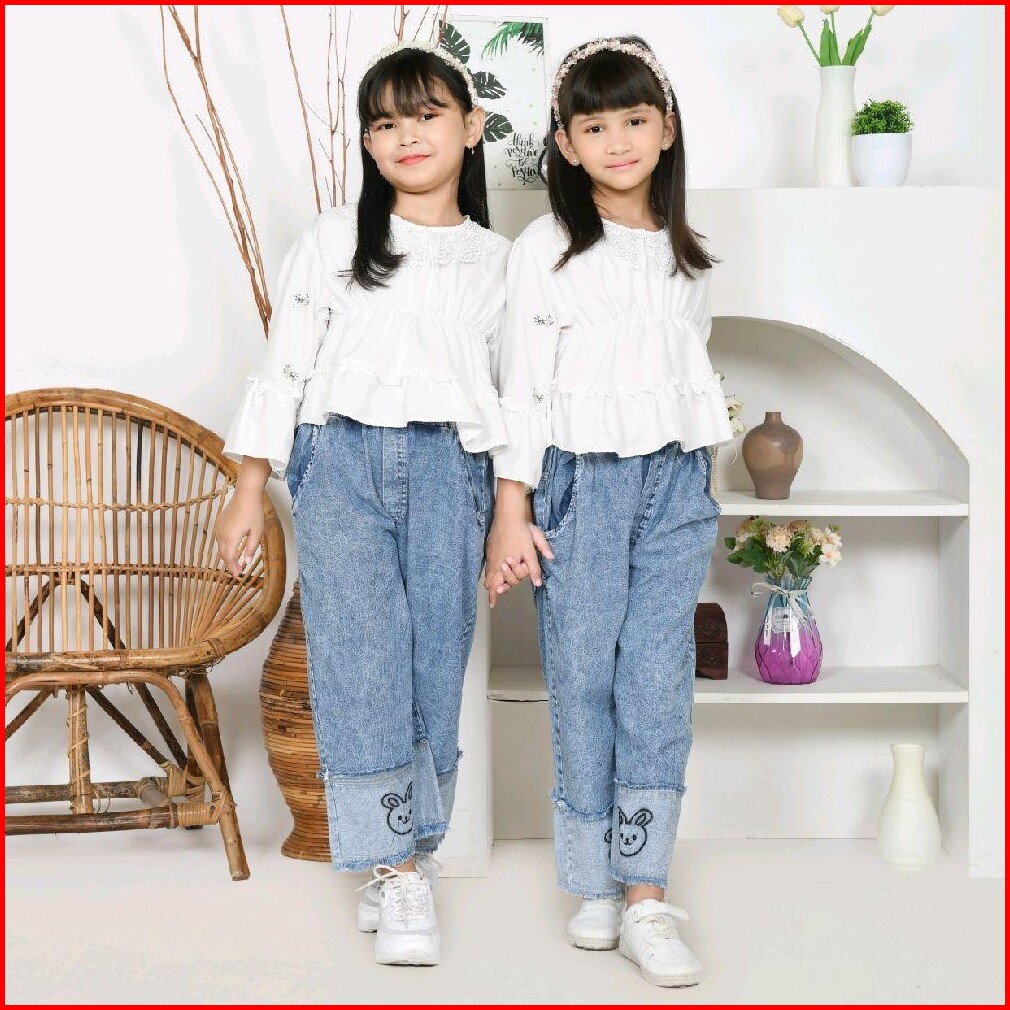 Sinarbarukids Setelan Anak Perempuan Kienzy Atasan Katun Celana Jeans Bordir 1 - 12 Tahun