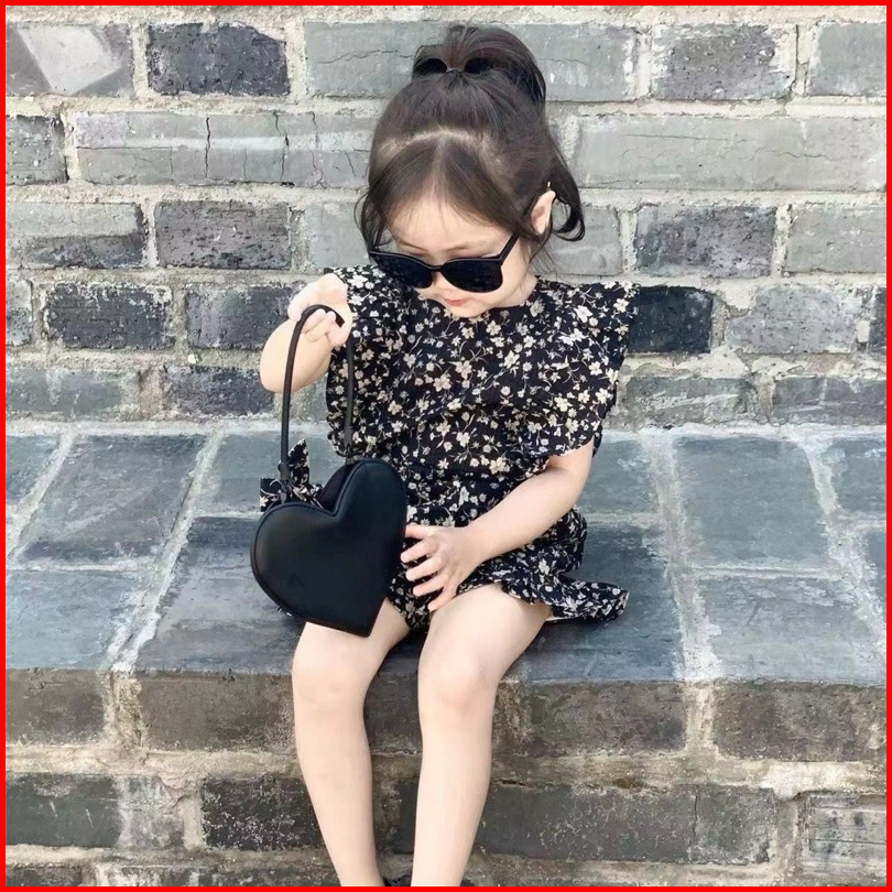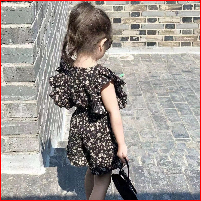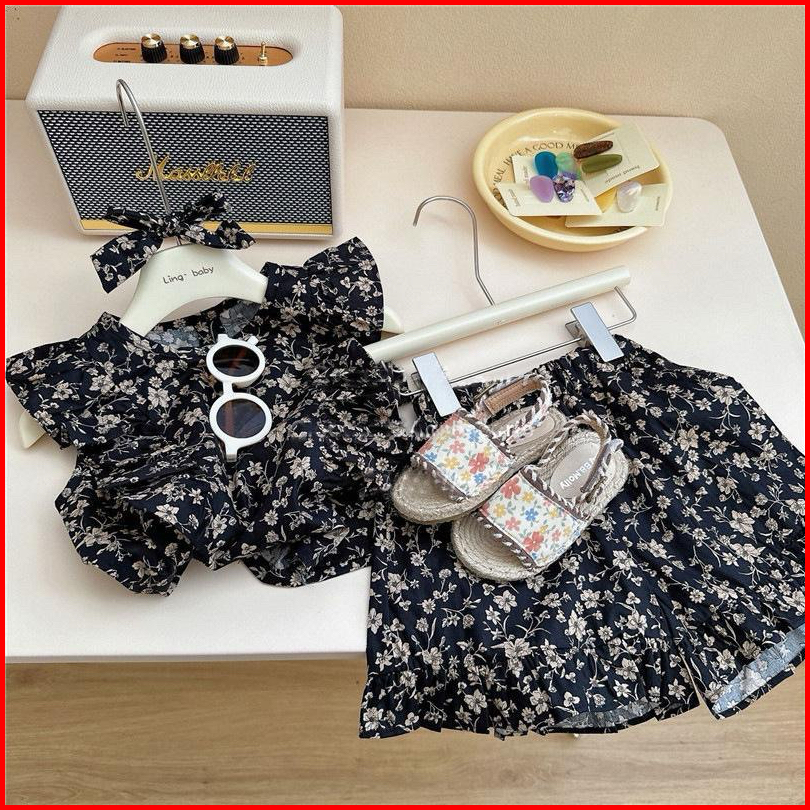 2-10tahun Setelan Pendek Ruffle Floral Hitam Baju Anak Perempuan Bunga Korean Outfit