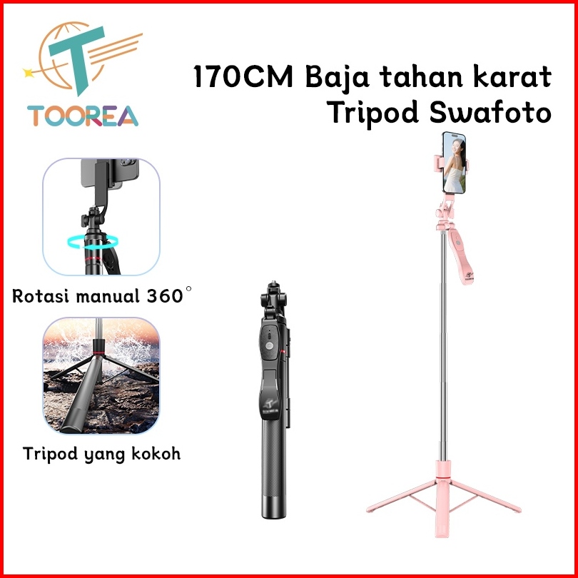 Toorea U17 Selfie Stick 170cm Tripod Tongsis Bluetooth Hp Holder Kamera Dslr Tripod Stainless Steel Tongsis Dengan Remot