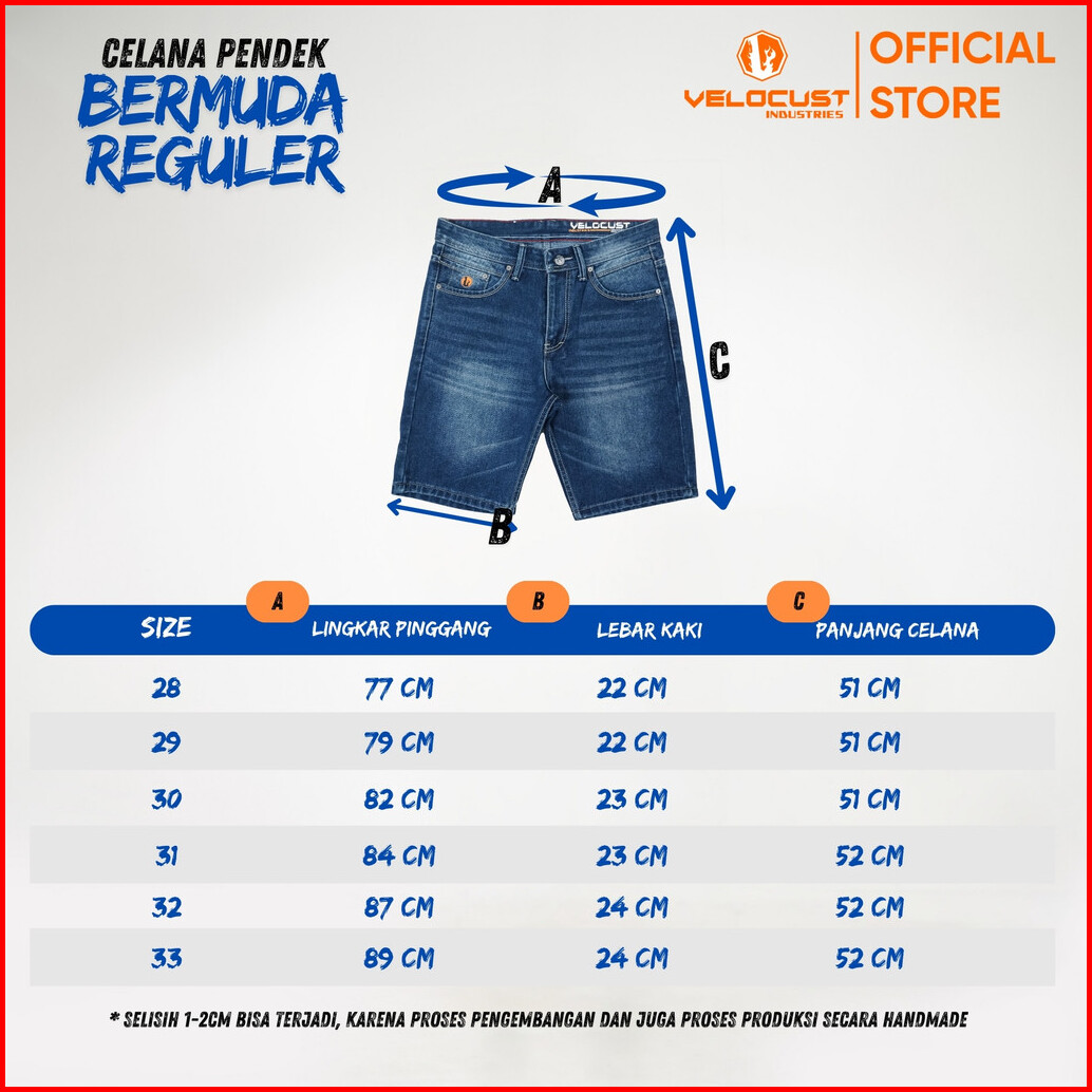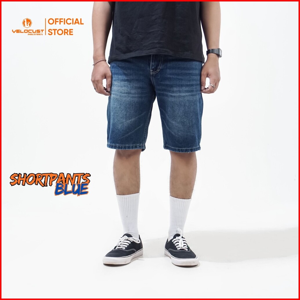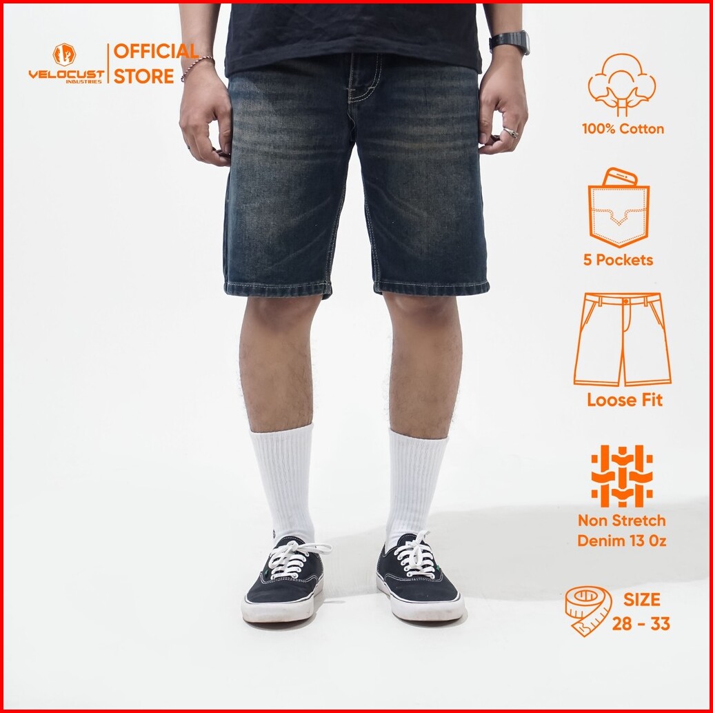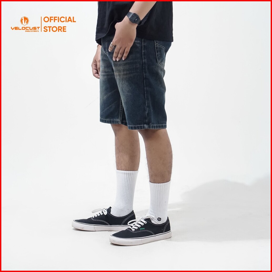 Velocust - Celana Pendek Jeans Bermuda Wishker Denim Washing