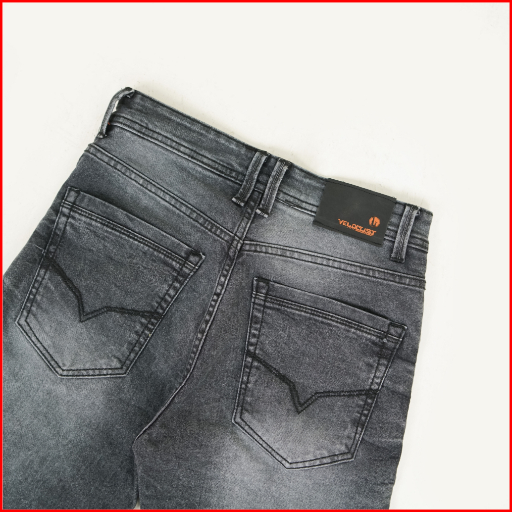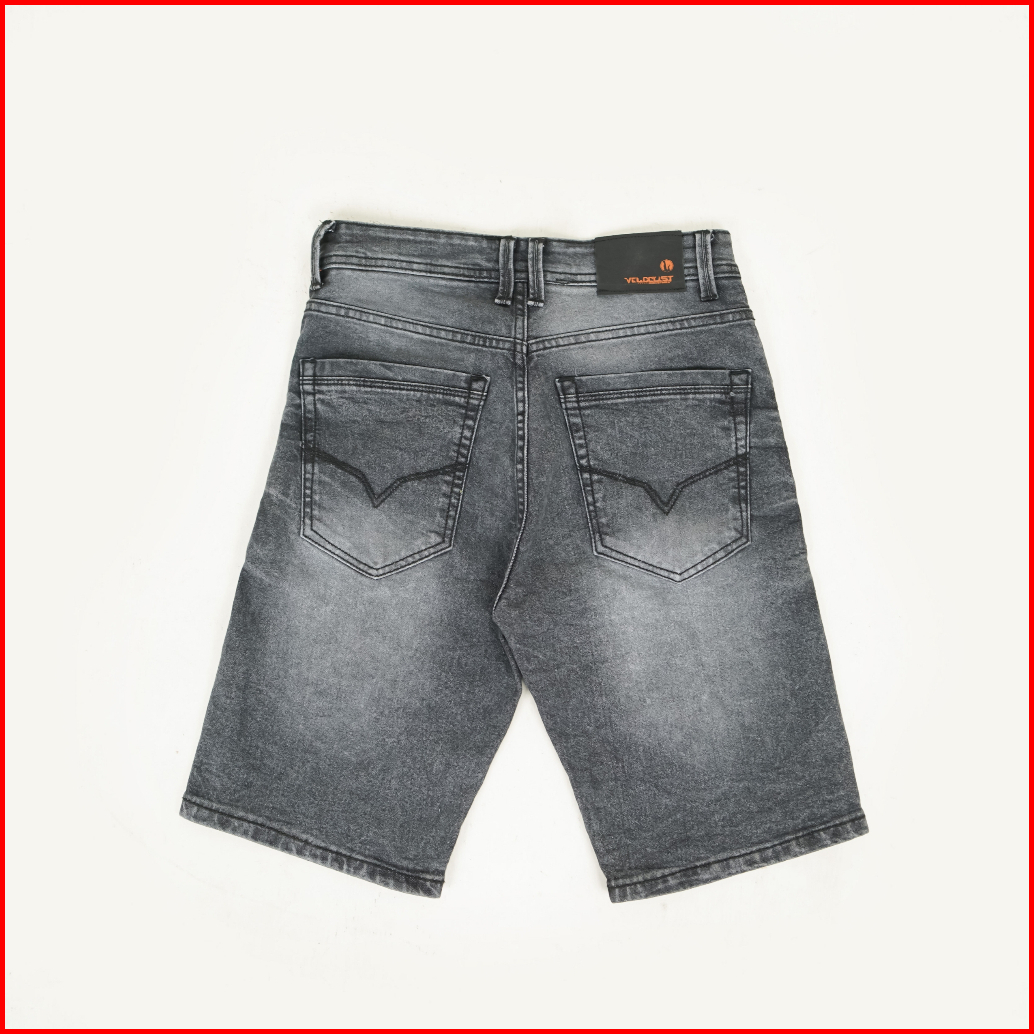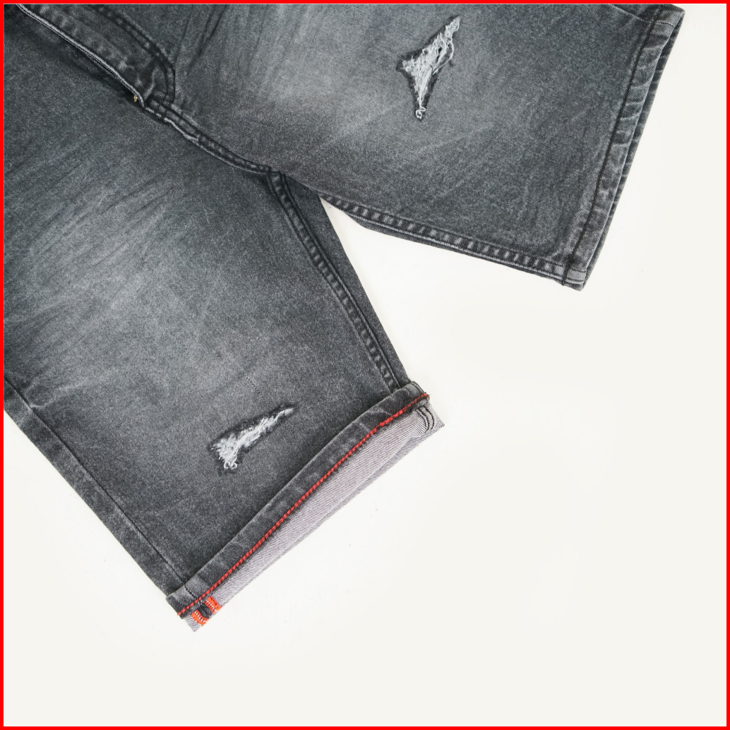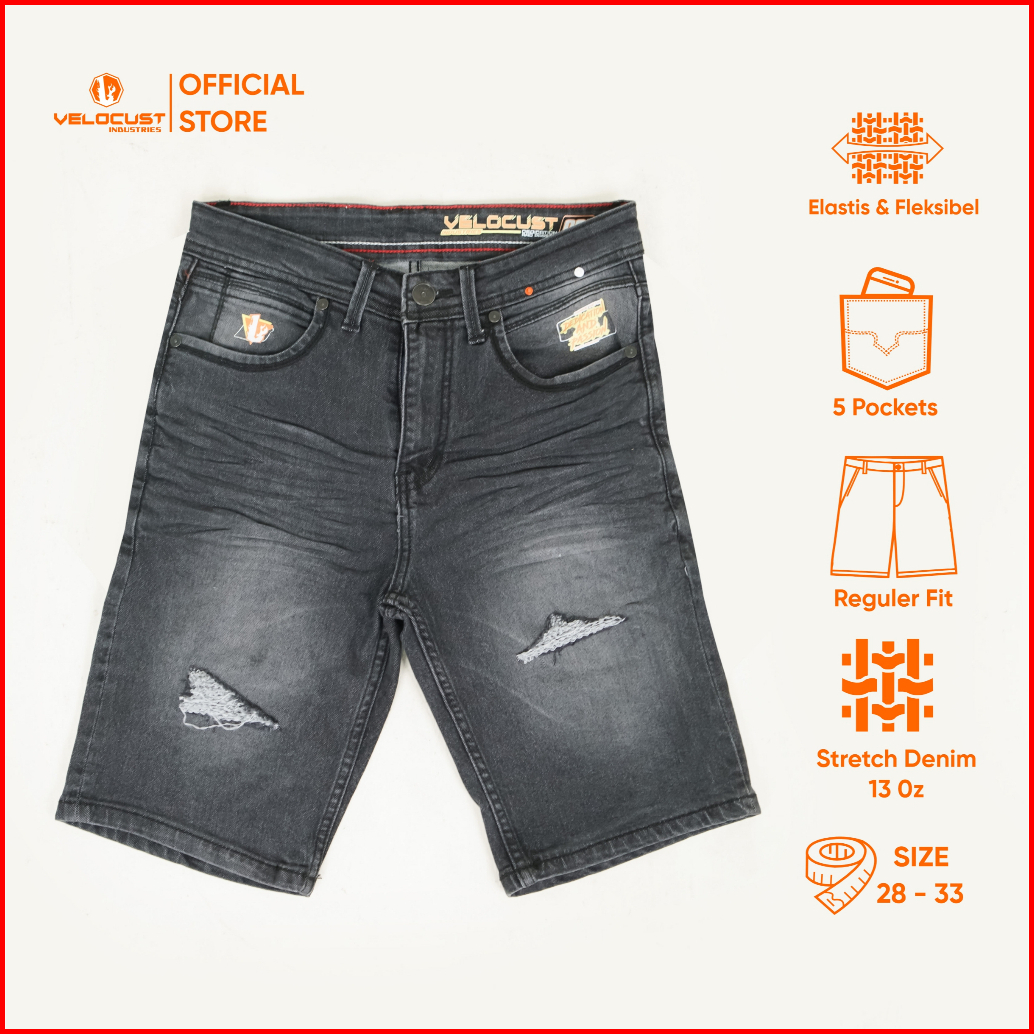 Velocust - Celana Pendek Jeans Slimfit Sobek Lapis Leather Patch Black Series