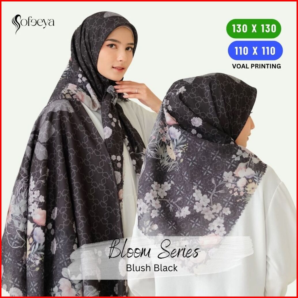 Sofeeya - Hijab Voal Motif Printing Bloom Series Kerudung Segi Empat Ukuran 110 Dan 130 Syari Jumbo