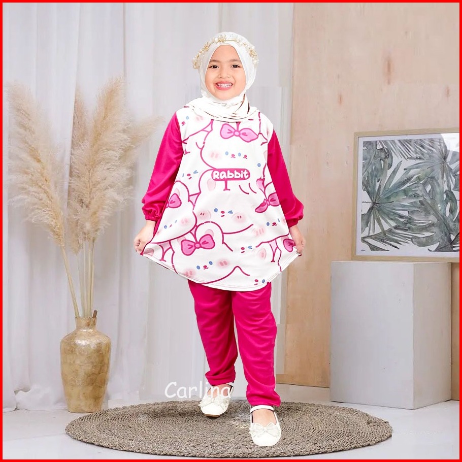 Carlina Setelan Rabbit Anak Perempuan Baju Dan Celana Panjang 3-13 Tahun