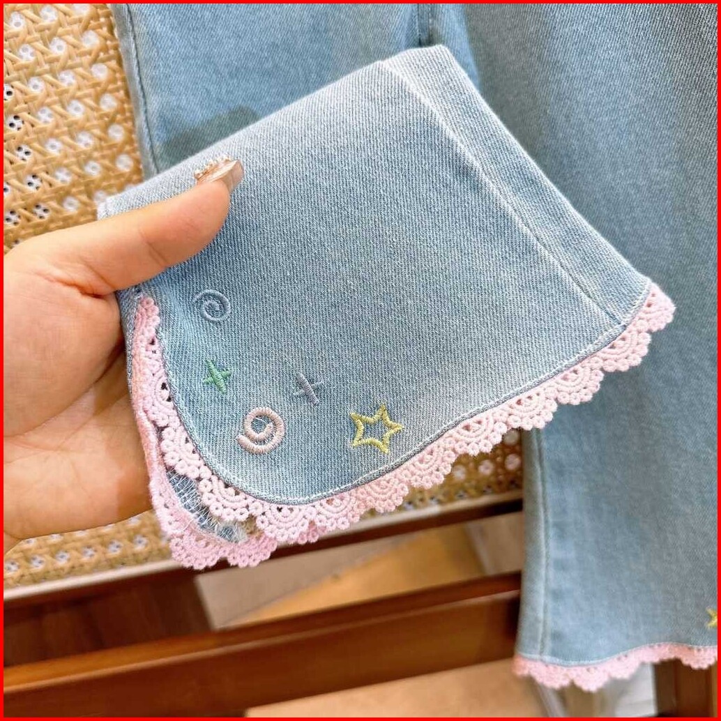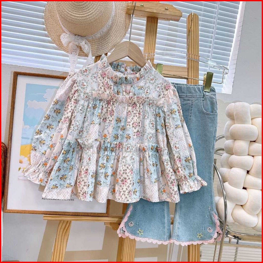 Kidsfo-14 Setelan Set Anak Perempuan Blouse Bunga Celana Panjang Jeans