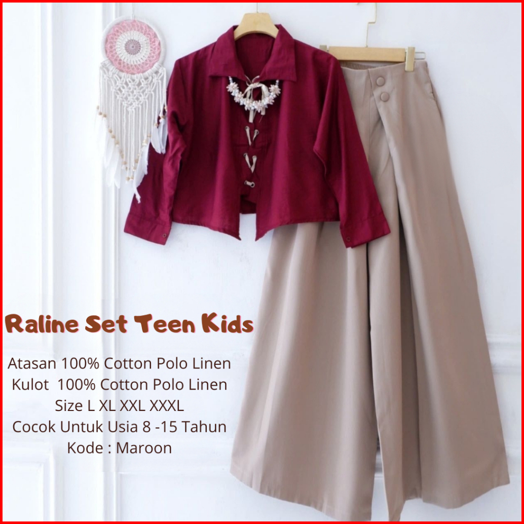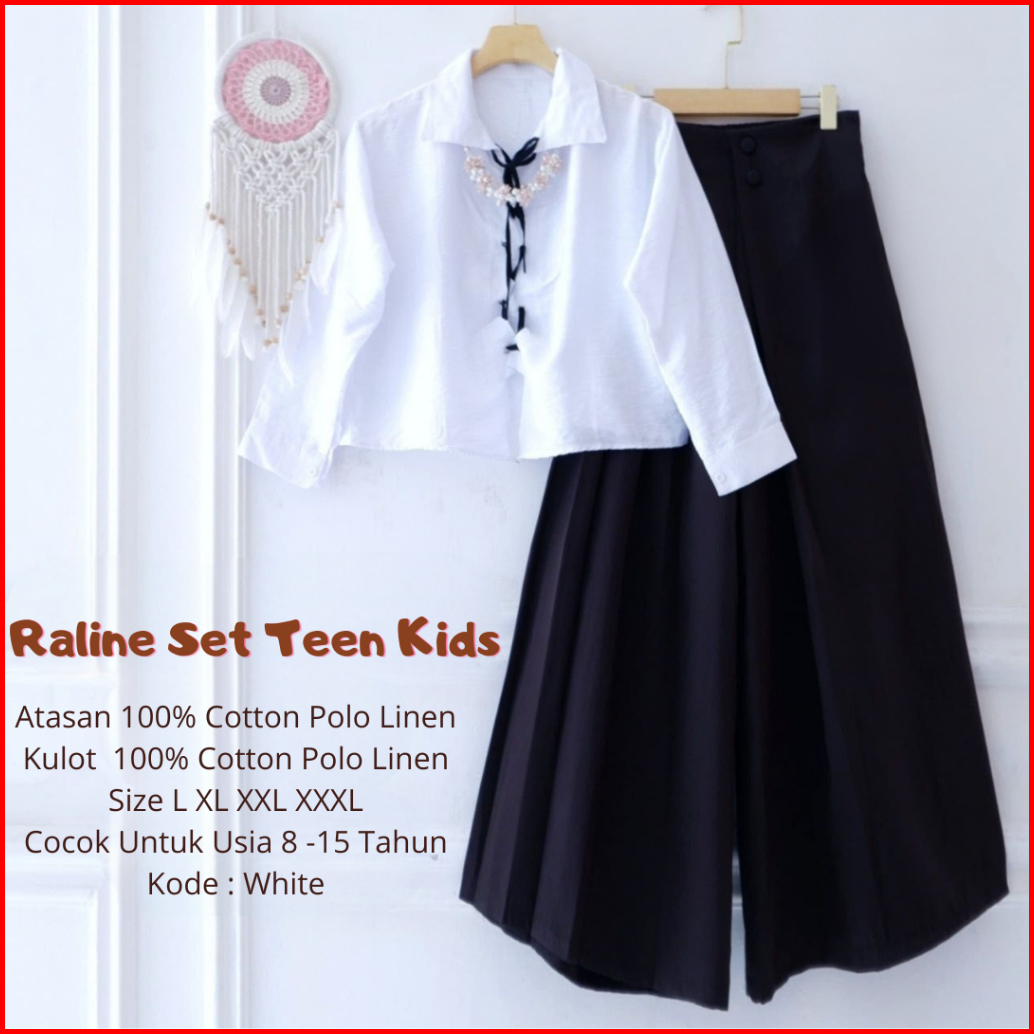 Raline Set Teen Kids Blouse Polo Linen Culottes Pants Setelan Anak Perempuan