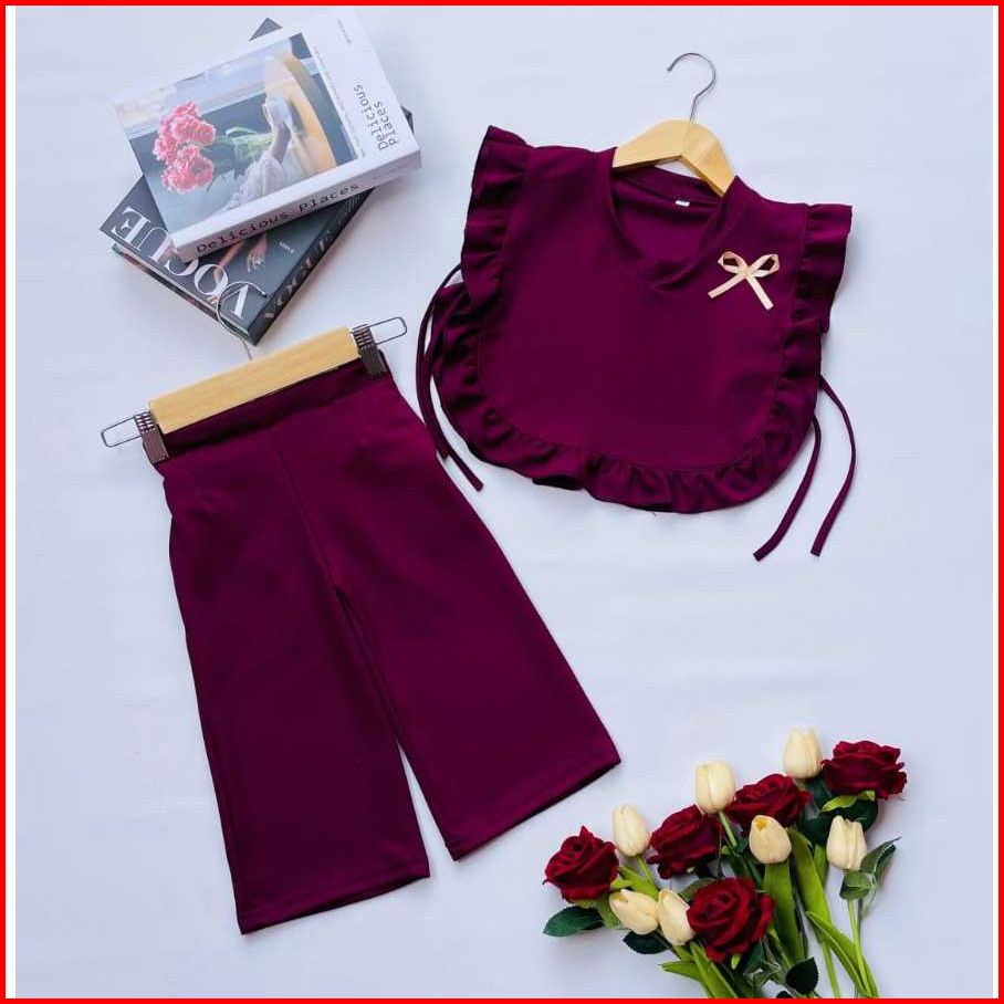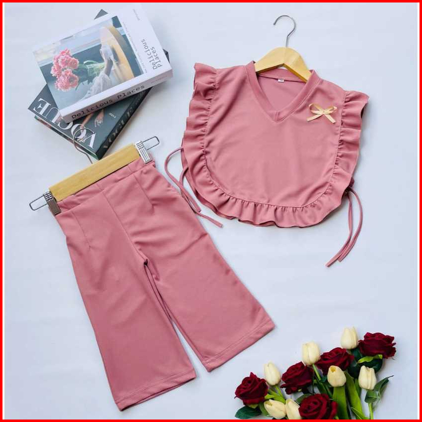 Setelan Vest Anak Perempuan Celana Baggy Pants Usia 1-10 Tahun Dengan Ruffle Dan Pita Cantik Bahan Knit Japan Line