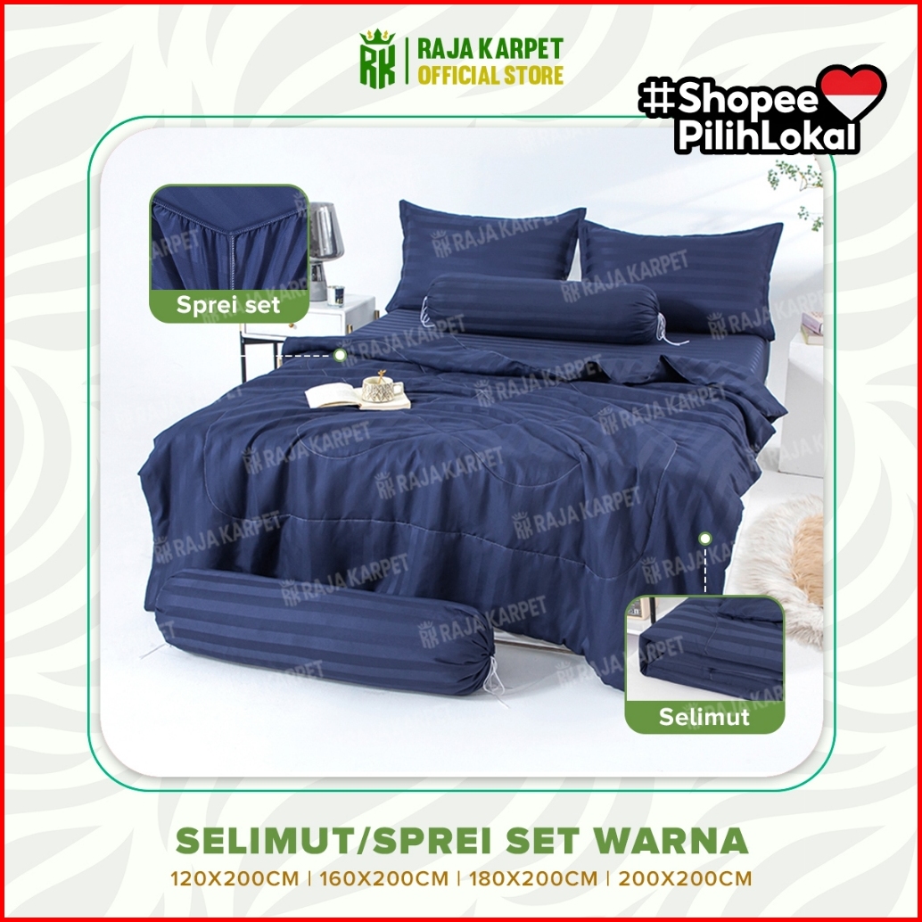 Raja Karpet - Sprei Set Sarung Bantal Guling Selimut Saja Bedcover Only Motif Polos Salur