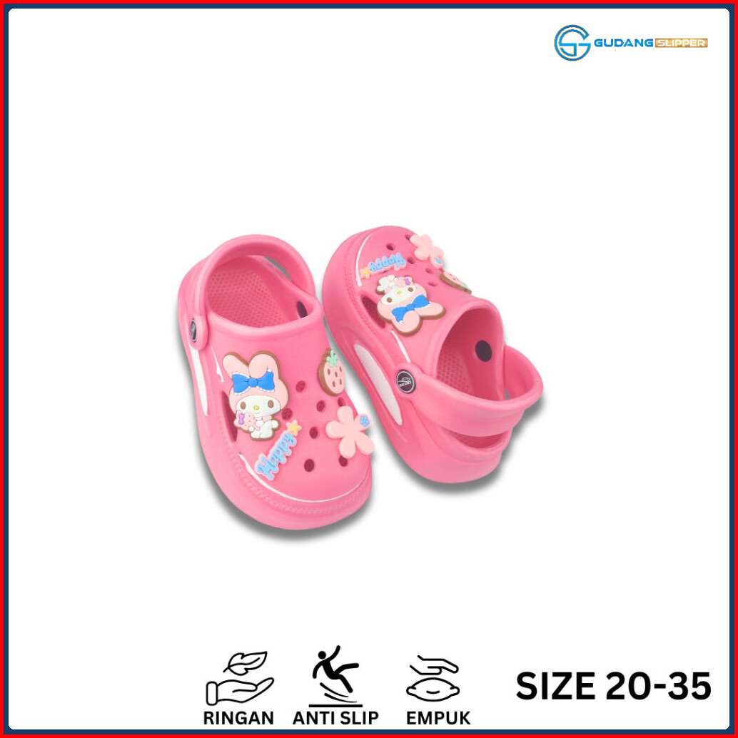 Gs Sandal Baim Premium Anak Perempuan Cewek Viral Sendal Kodok Bayi Korean Jibbitz Melody Kelinci Size 20-35