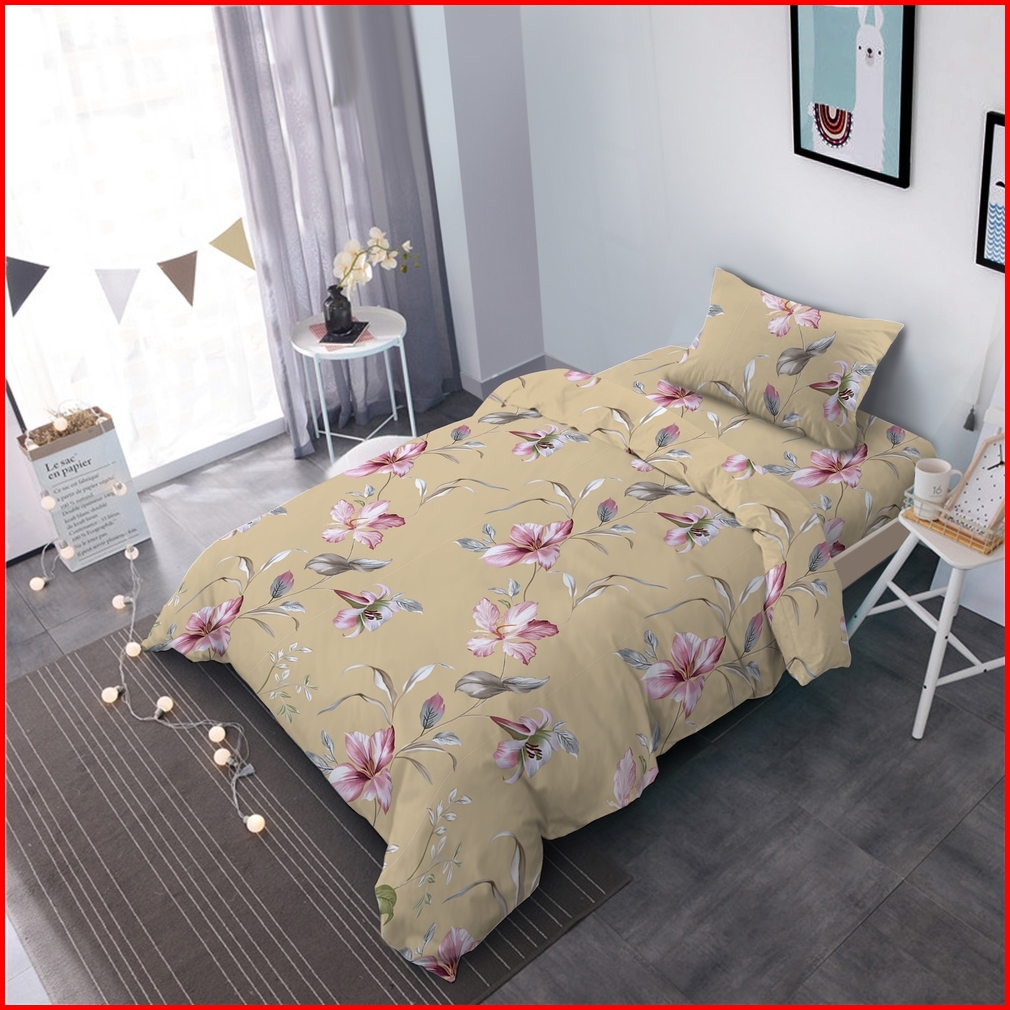 Kintakun Bedcover Set Fitted 120 Single Altin Aesthetic Minimalis Bunga Korea Dluxe Microtex Krem Tinggi 30 Cm