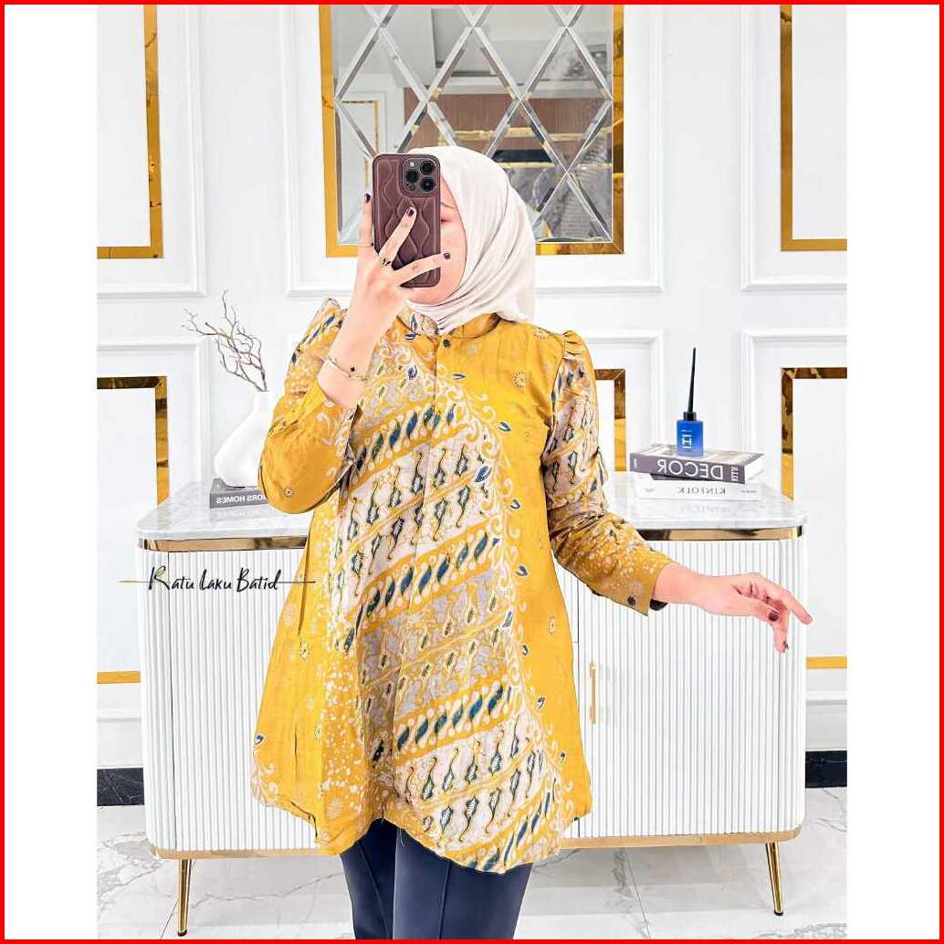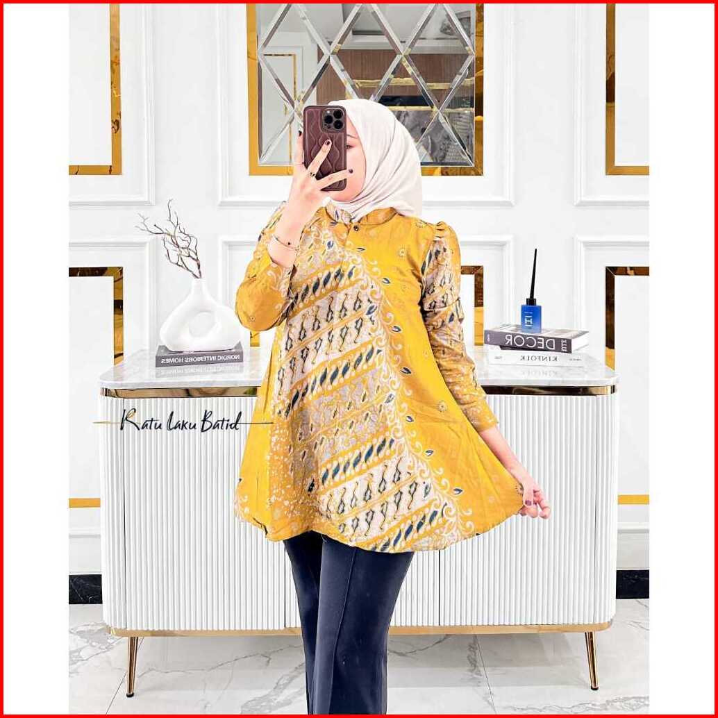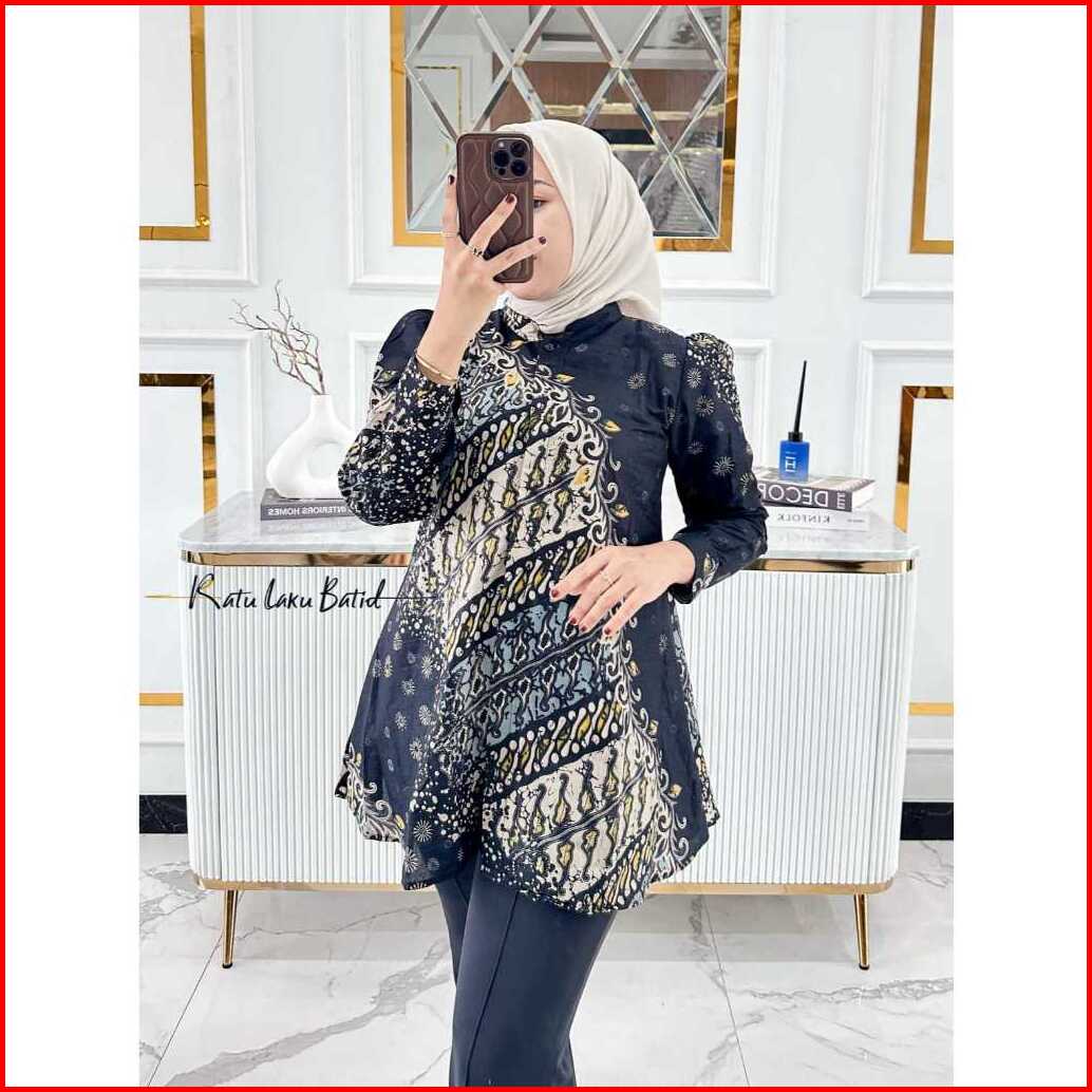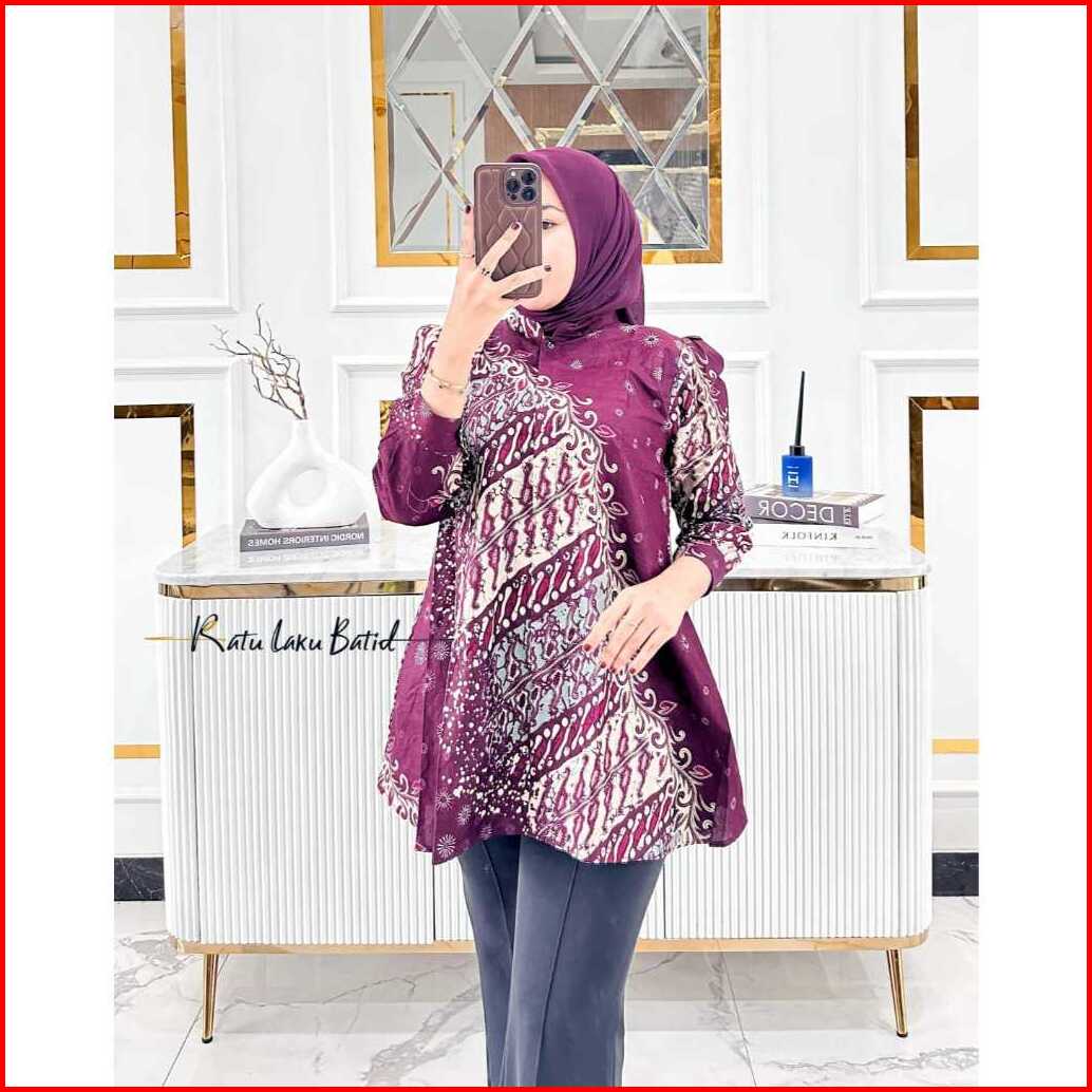 Atasan Batik Wanita Modern Lengan Panjang Puffy Kancing Depan Busui Blouse Anjani By Ratu Laku Batik Baju Formal