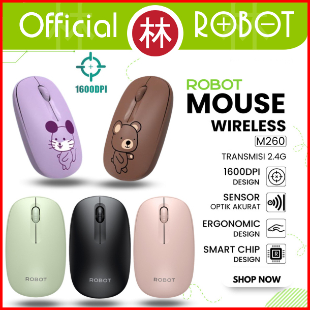 Robot M260 Wireless Mouse Pc Laptop Animal Bear Mouse Karakter Hewan Beruang 2.4g 1600 Dpi