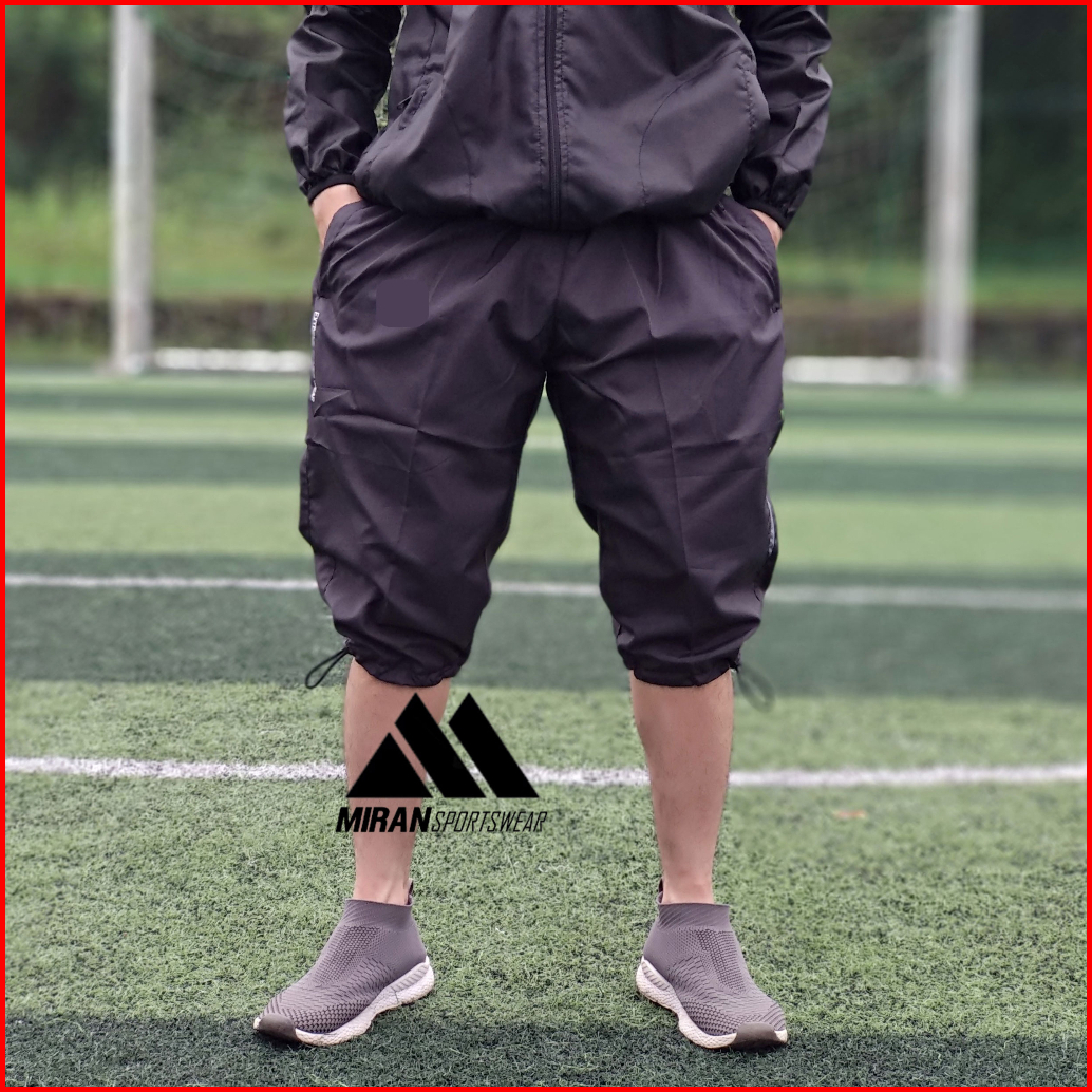 Celana Olahraga Pria Wanita Jumbo Sontog 3 4 Selutut Training Bahan Parasut Saku Samping Resleting
