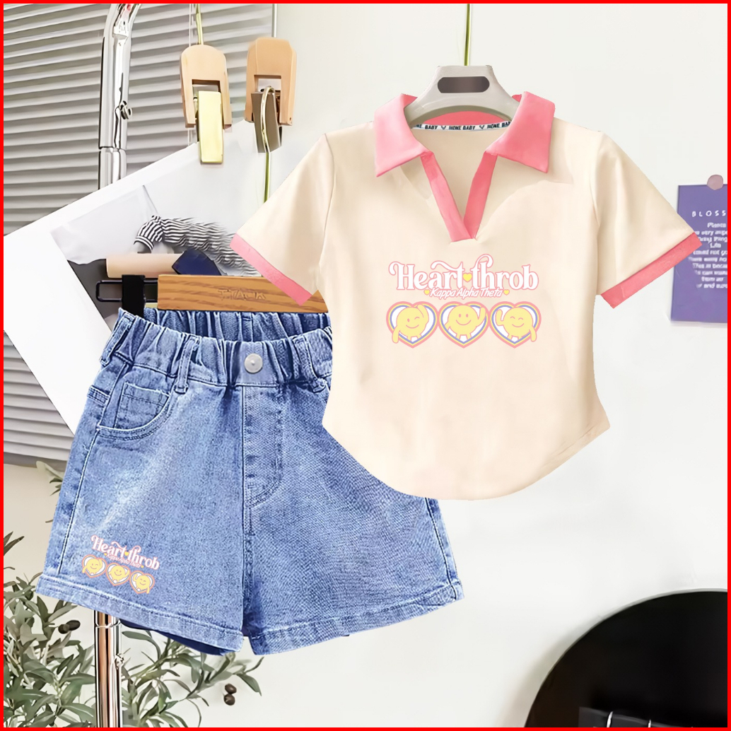 Setelan Baju Anak Cewek Celana Jeans Pendek Anak Perempuan Usia 1 2 3 4 5 6 7 8 9 10 11 12 Tahun