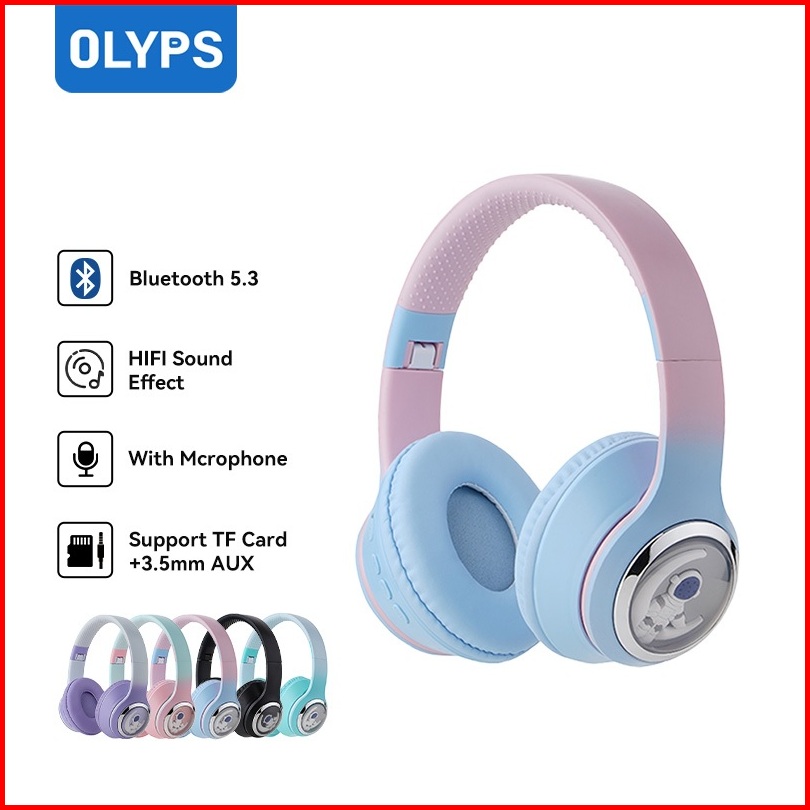 Olyps Headphone Wireless Bluetooth Hifi Sound Headset Macarons Support Tf Card And 3.5mm Aux Modes