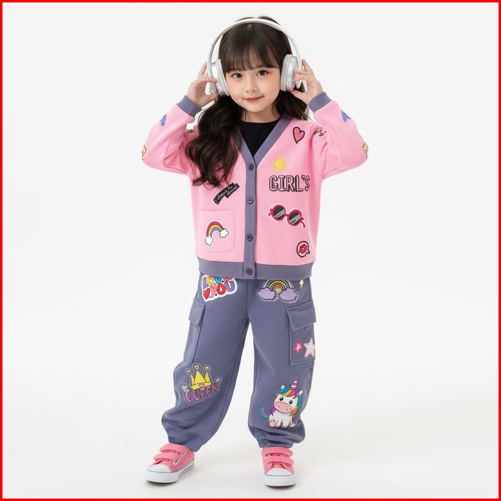 Setelan Cardigan Anak Perempuan 2in1 Super Gemas Multicolour Celana Cargo Anak Anak 2-10 Tahun