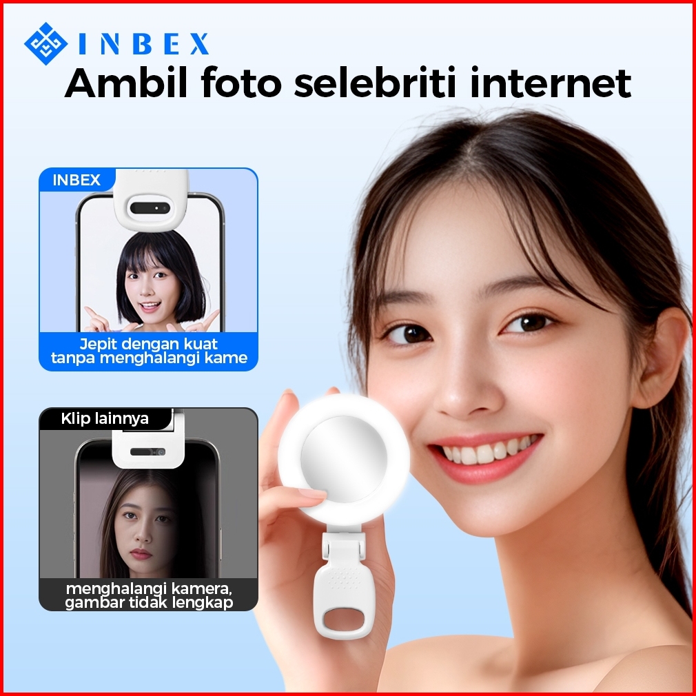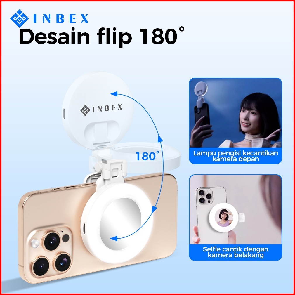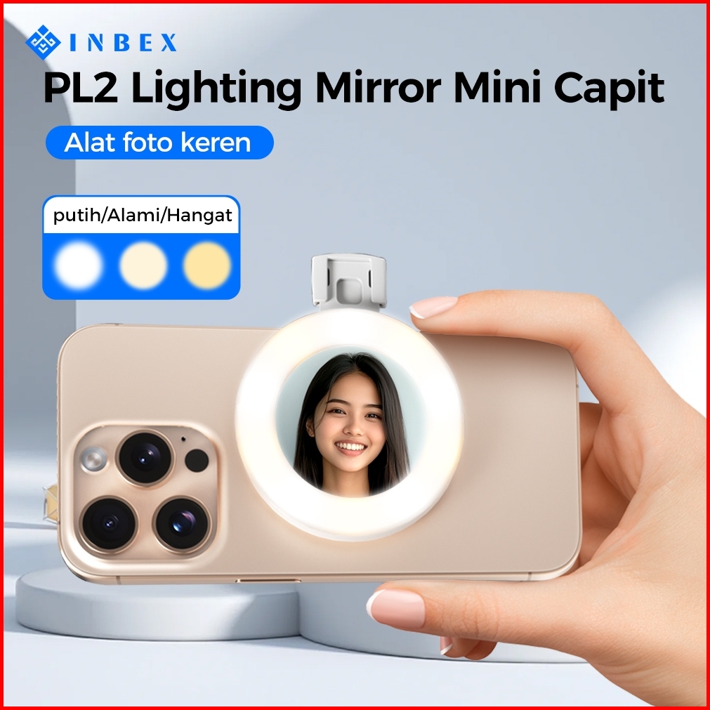 Inbex Pl2 Lighting Konten Ring Lighti Mini Mirror Capit Konten Kreator Portable Lampu Selfie Hp