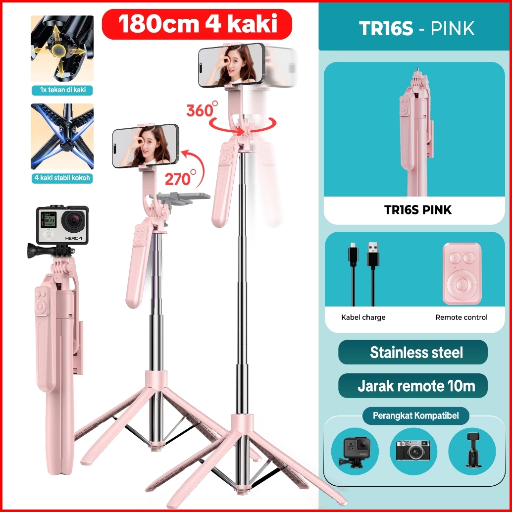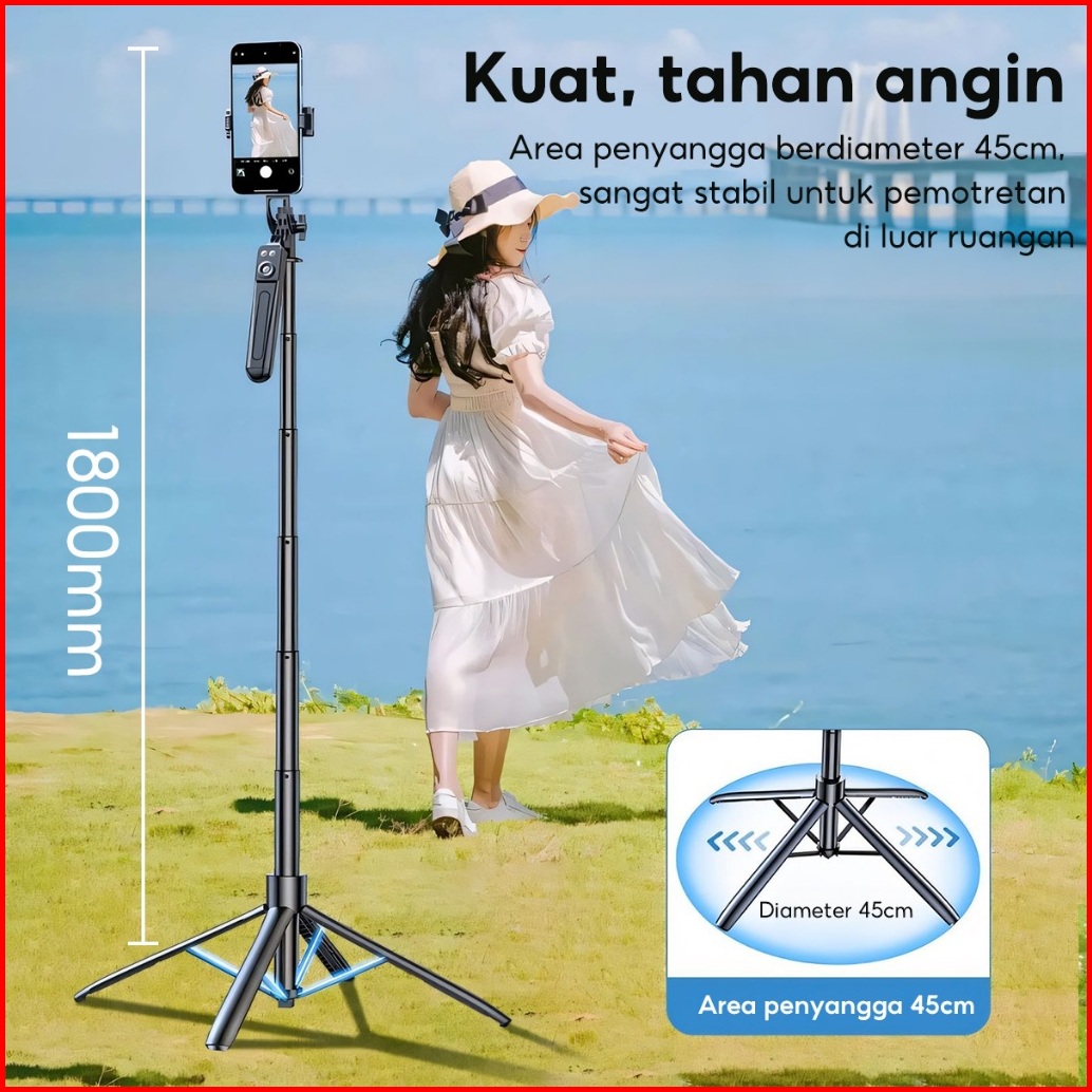 Tinggi 1800mm Hieen Tripod Macaroon Tr16s Remote Bluetooth 5.4 Tongsis Video Konten Unboxing