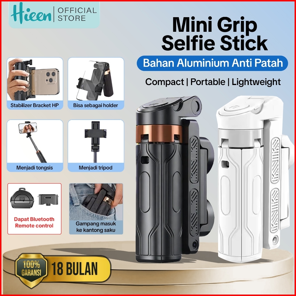 Hieen Mini Hand Grip Selfie Stick Remote Bluetooth Tongsis Tongkat Selfie Multifungsi Tr20