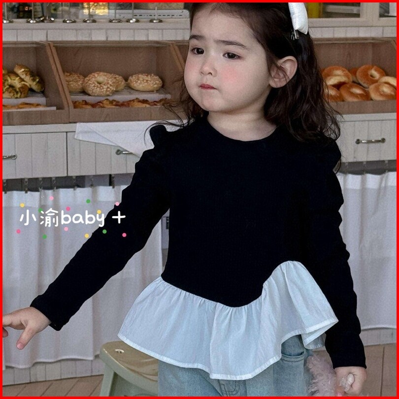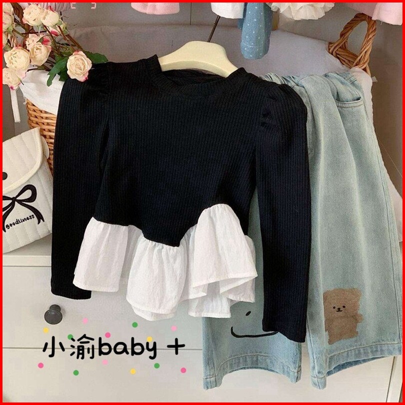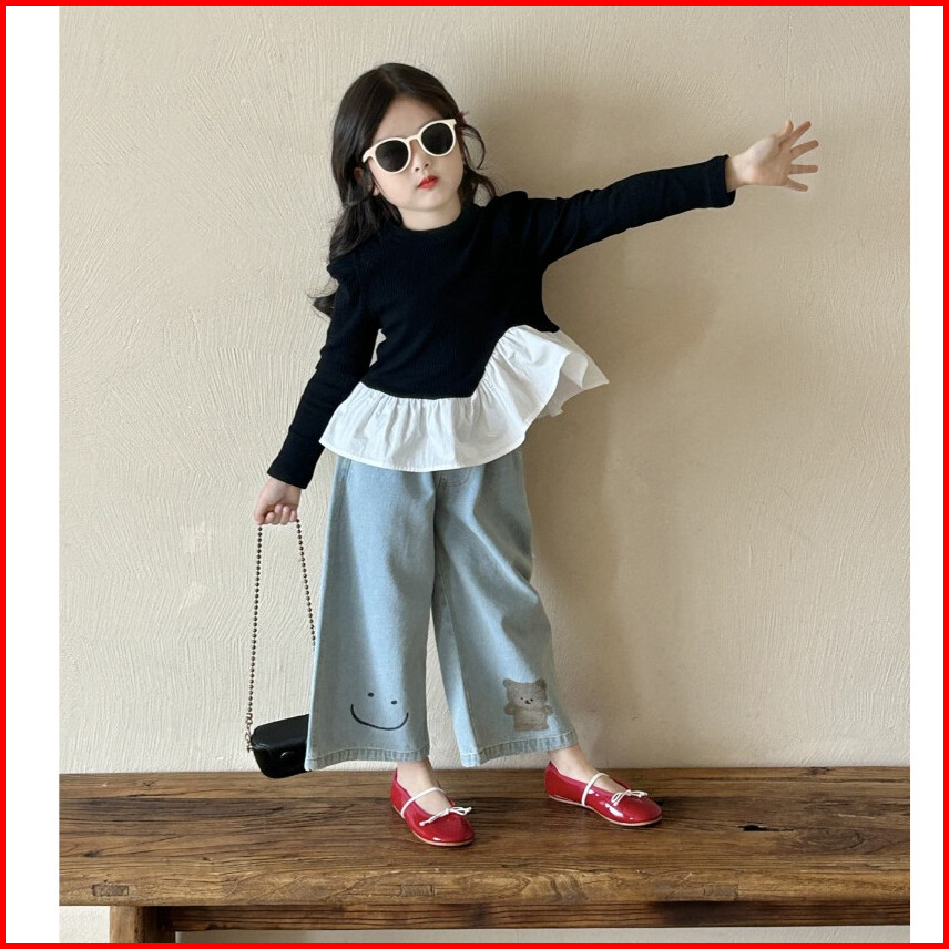 Chubbi 21 - Setelan One Set Anak Perempuan Kaos Hitam Lengan Panjang Celana Jeans Kulot