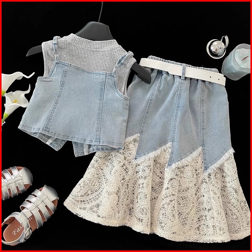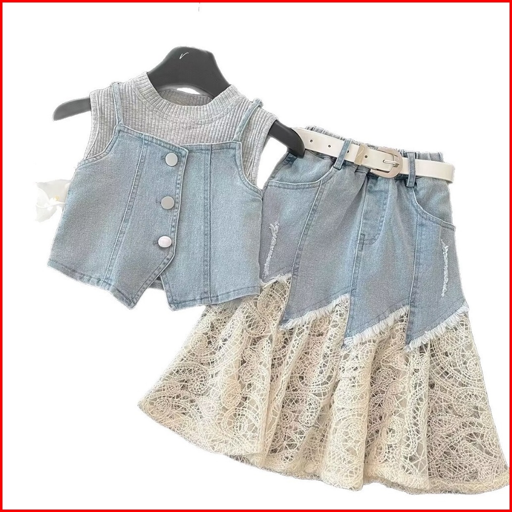 Ryuta Setelan 4in1 Jeans Belt 1-10 Tahun Rok Jeans Cutbray Anak