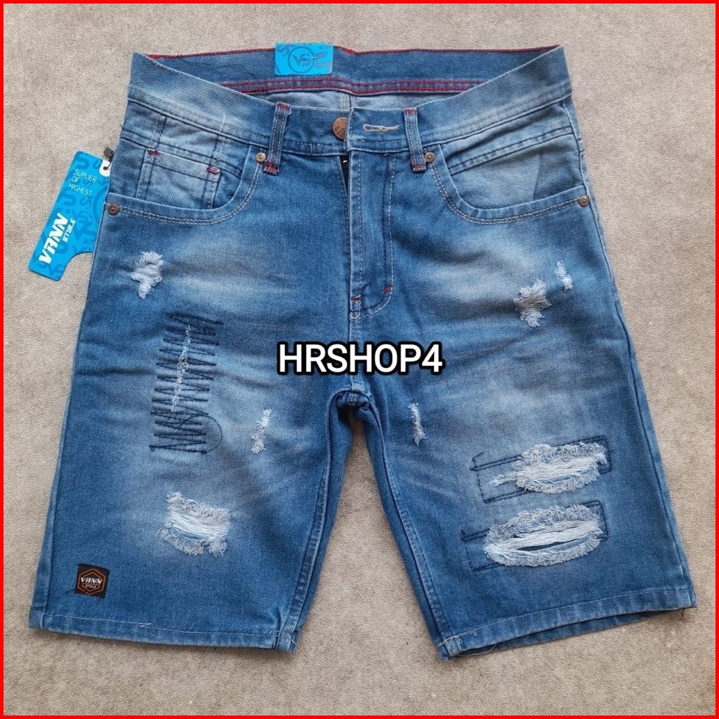 Celana Jeans Pendek Sobek Pria Remaja Dewasa Kecil Besar