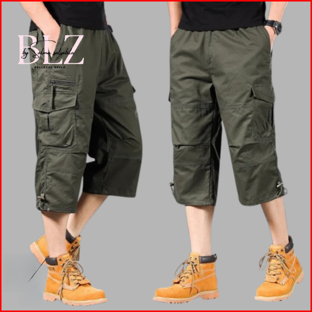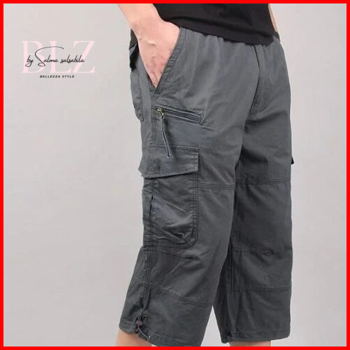 Bellezza Belerizza Celana Pendek Pria Kargo Di Bawah Lutut Bahan Katun Tebal Model Sirwal 3 4