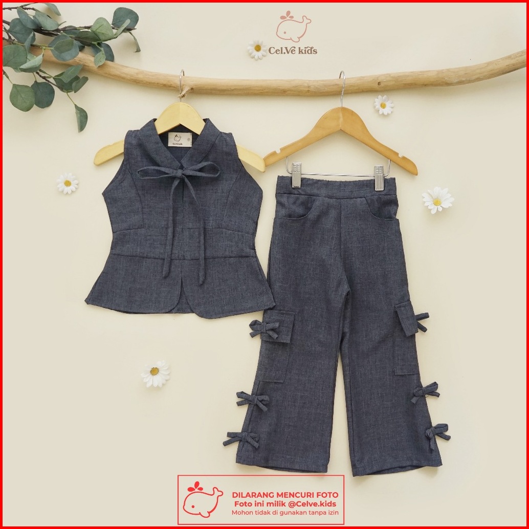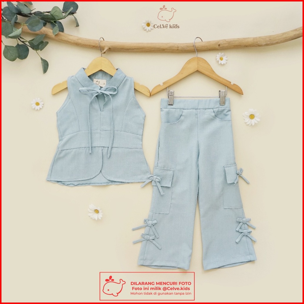 Celvekids - Stelan Izzy Set Baju Celana Anak Perempuan Korean Style Bahan Linen Premium Usia 1-8th