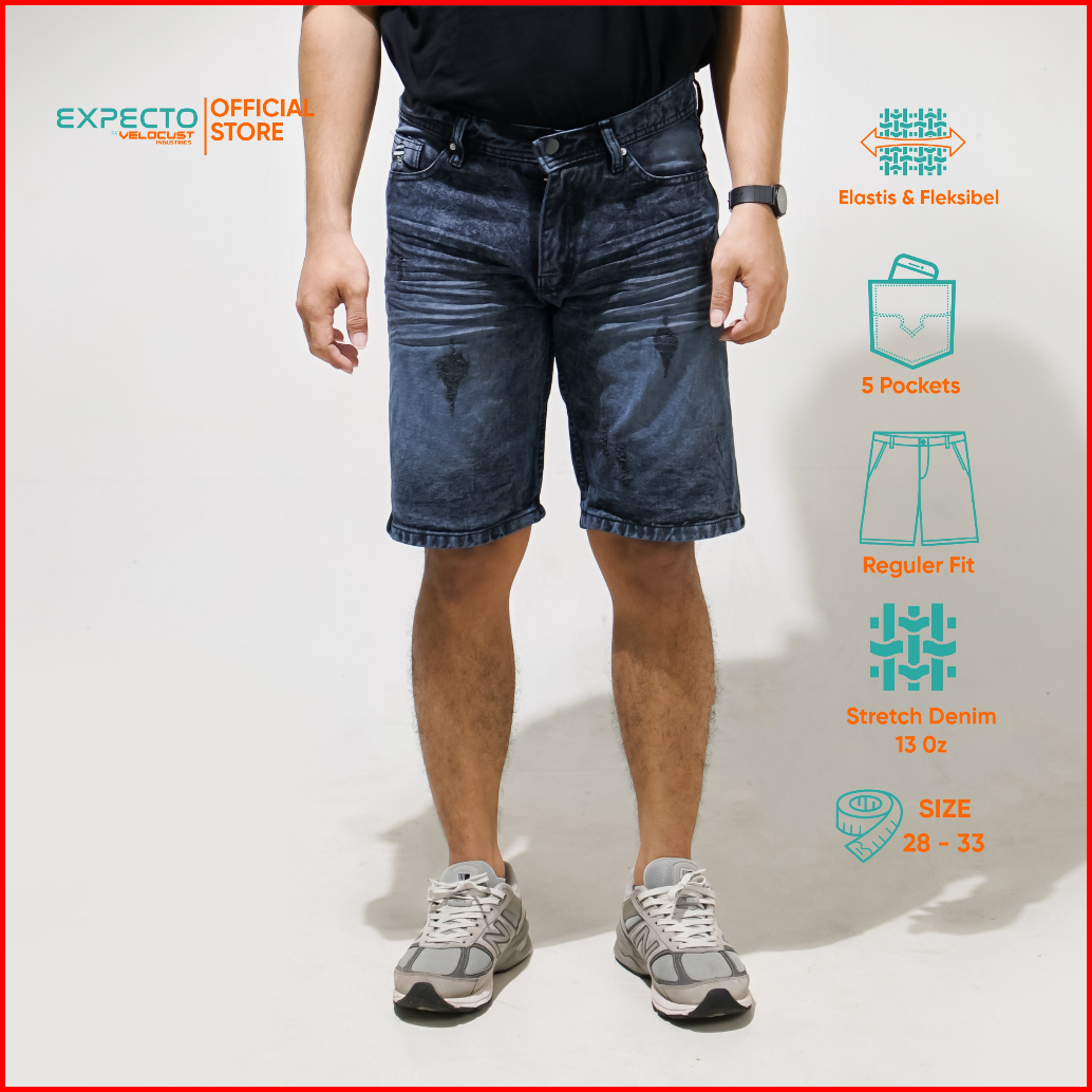 Expecto By Velocust - Celana Pendek Jeans Sobek Laser Snow Spray