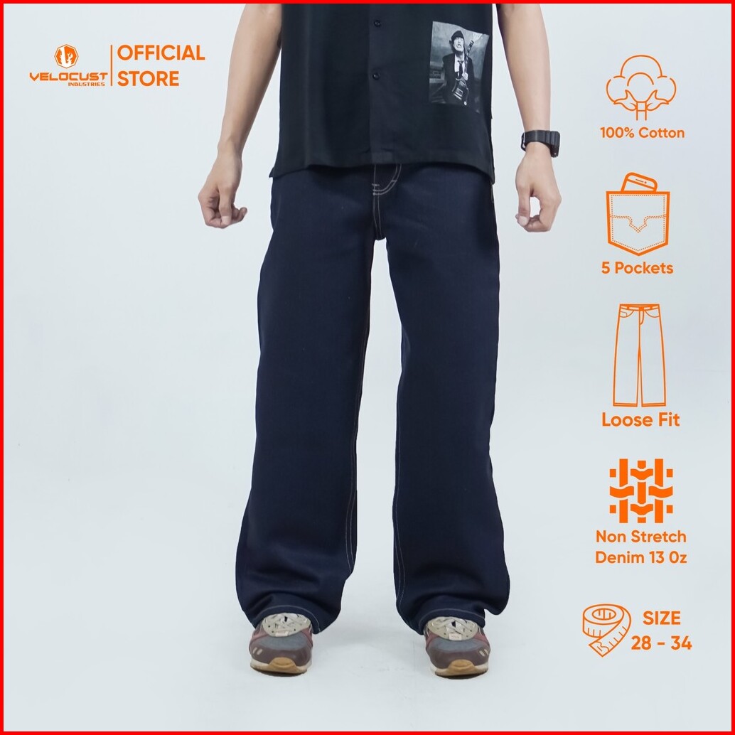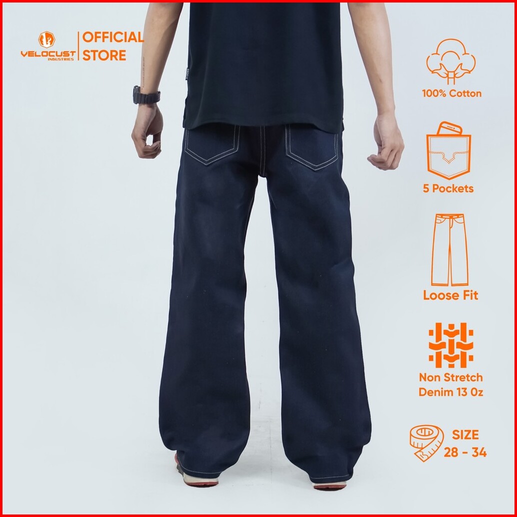 Velocust - Celana Panjang Jeans Loosefit Loose Pants Raw Denim Indigo Blue