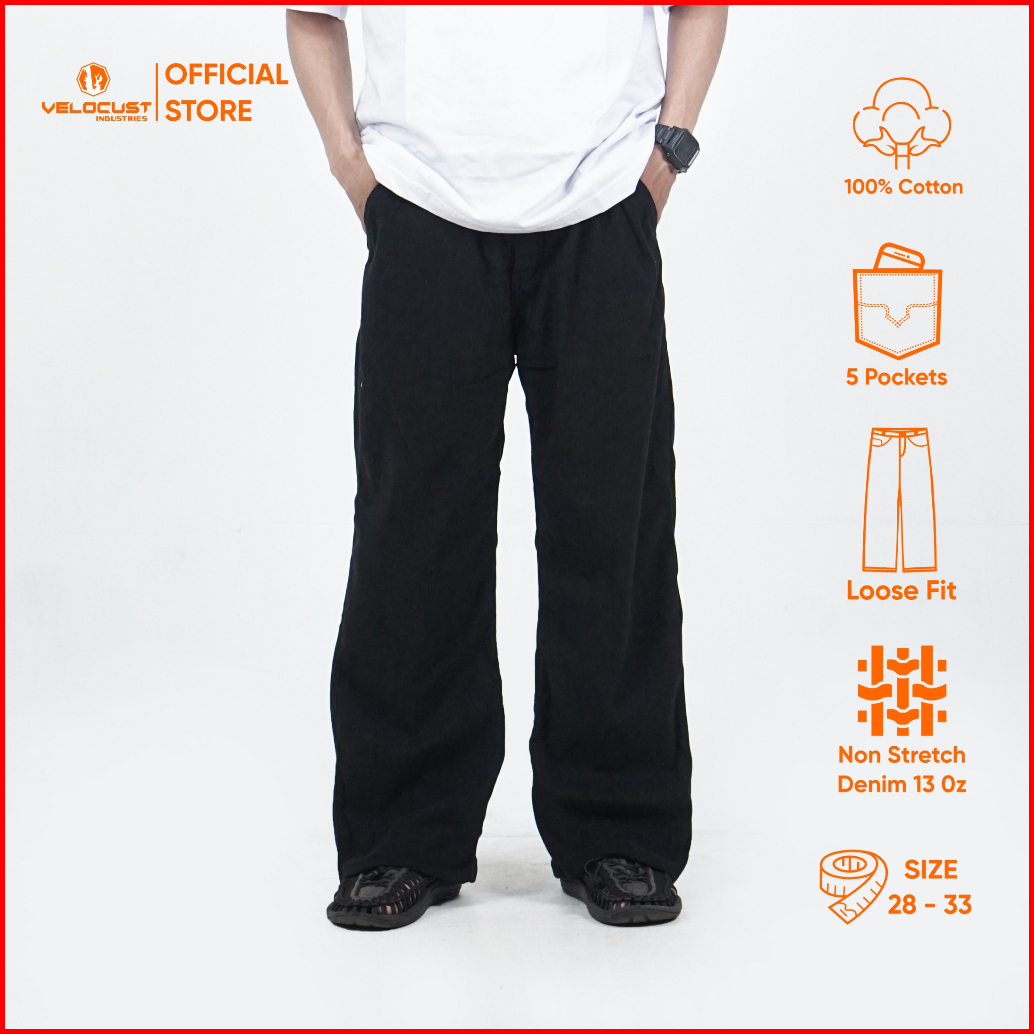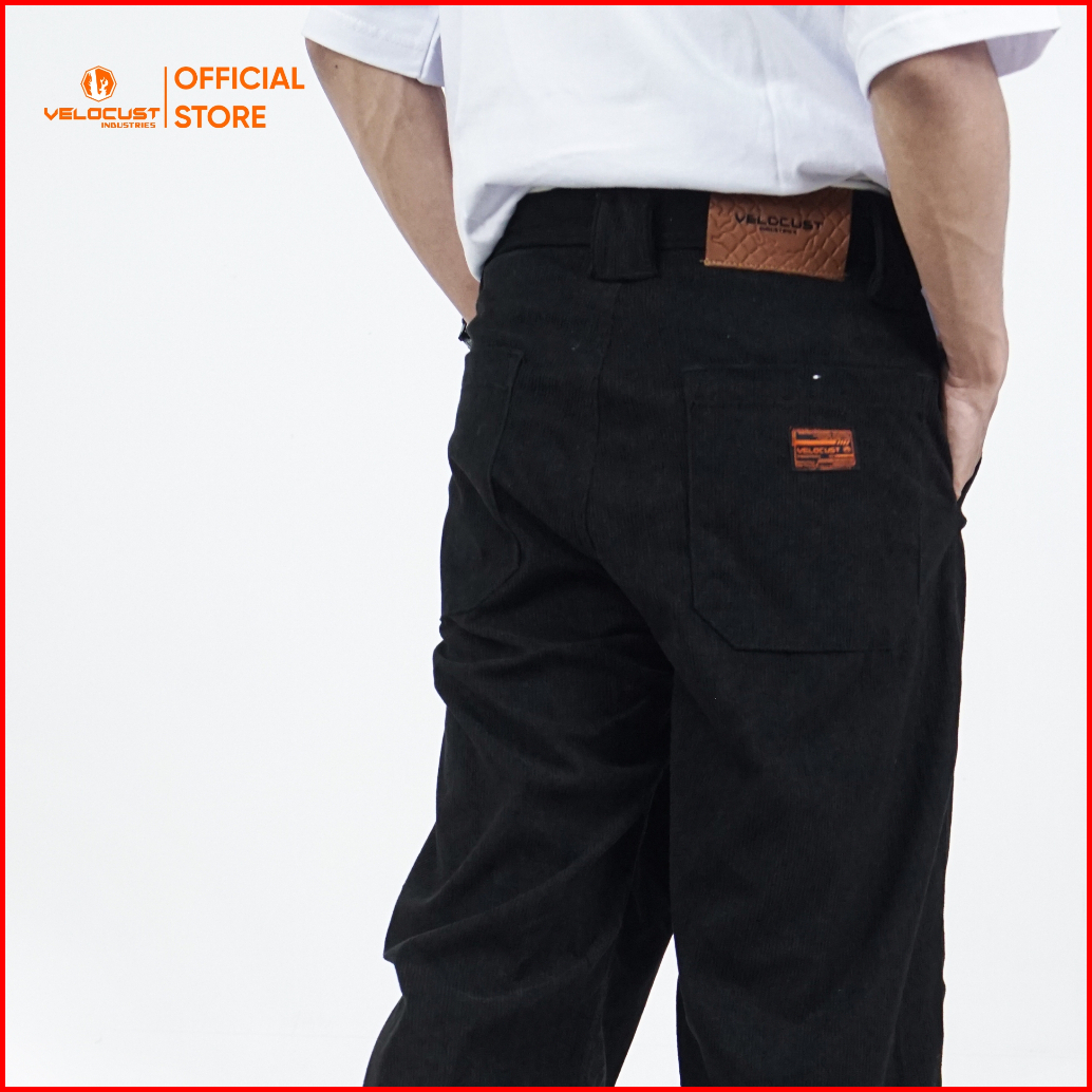 Velocust - Celana Panjang Corduroy Baggy Long Pants Hitam Stylish Pria
