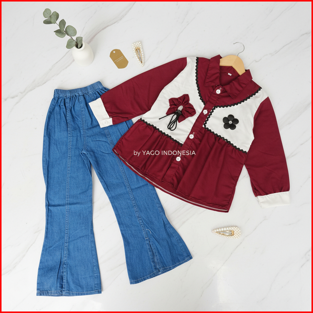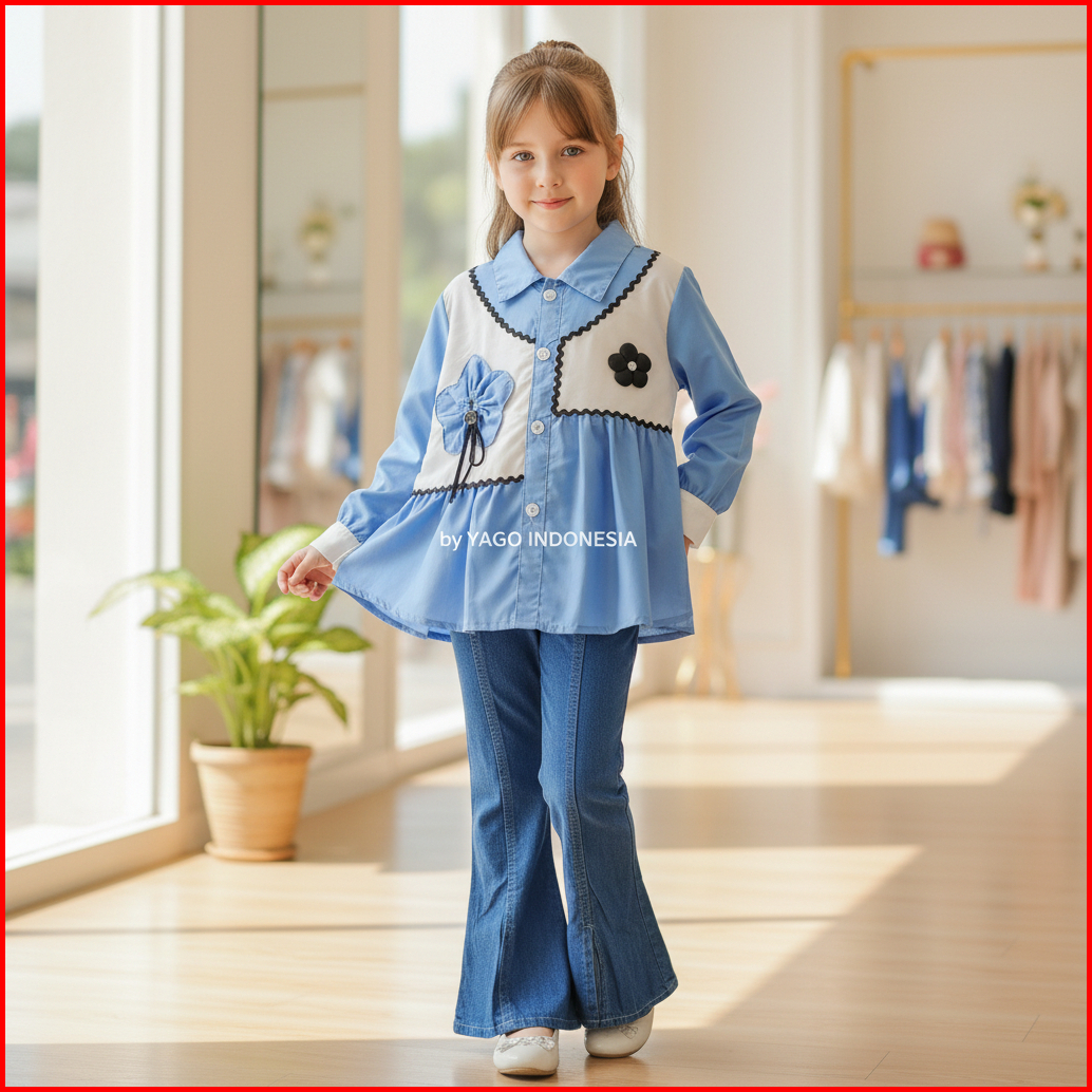 Setelan Anak Perempuan Premium Cutbray Jeans Set Baju Sakura Katun Yago Id 3-14 Tahun