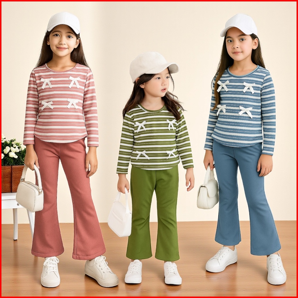 Setelan Celana Cutbray One Set Anak Evelyn Bahan Knit Salur Gogofashion 888