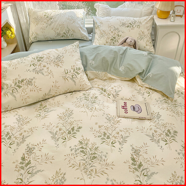 4 In 1 Bedcover Set Sprei Katun Premium Sarung Bantal Aesthetic Adem Estetik Kasu Anti Geser