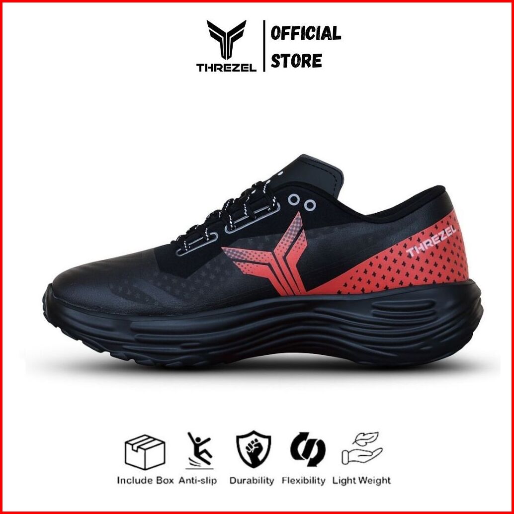 Threzel Sepatu Running Pria Wanita Prime Sepatu Lari Hitam Maroon
