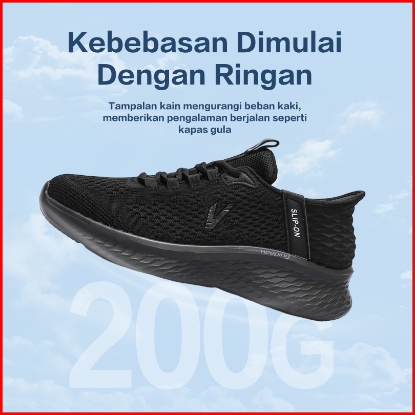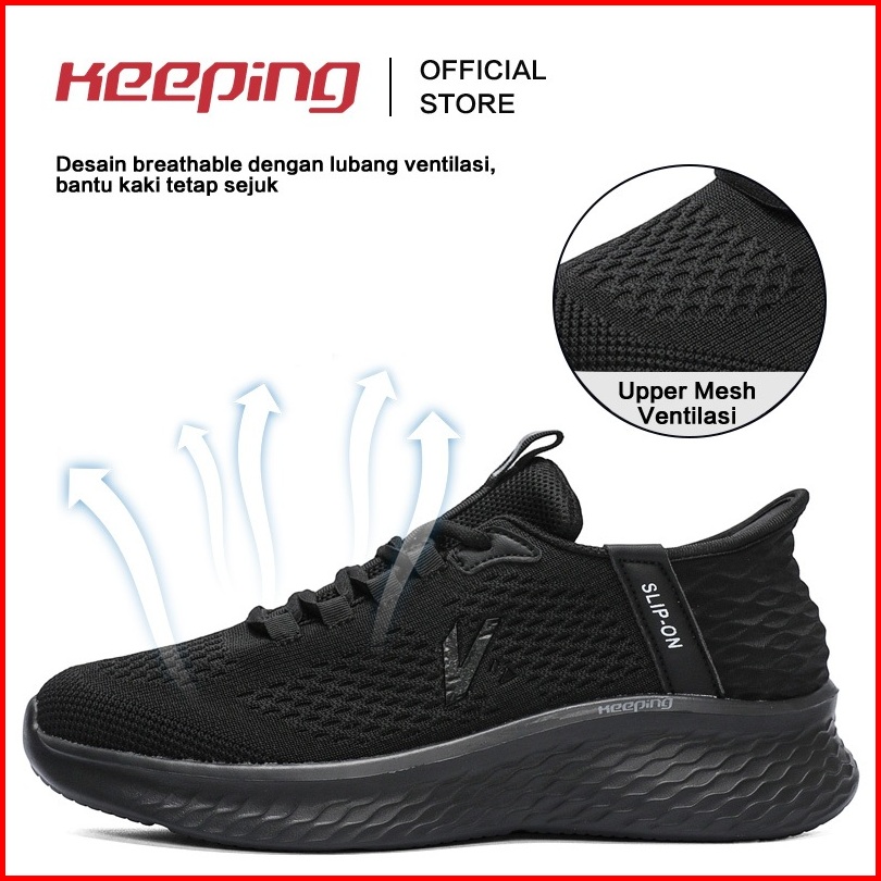 Keeping Sepatu Sneakers Pria Hitam Polos Sepatu Lari Slip On Sepatu Sekolah Running Gym Shoes Kss101