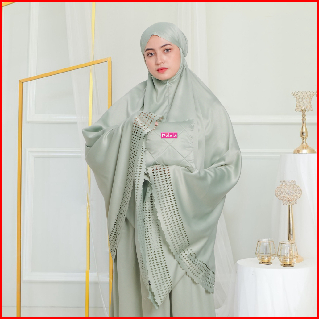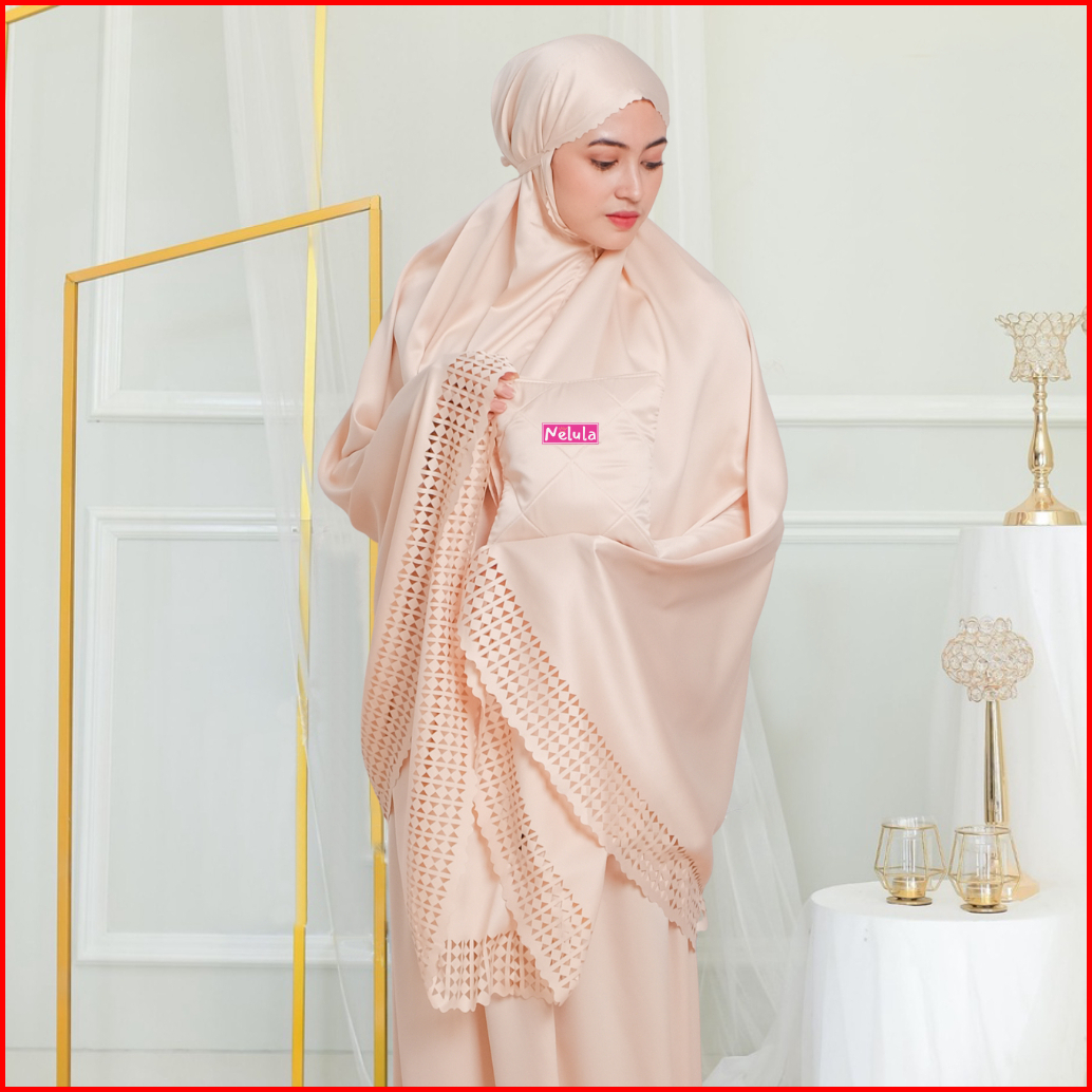 Nelula - Mukena Traveling 2in1 Lasercut Dewasa Bahan Sutra Velvet Silk Premium Polos
