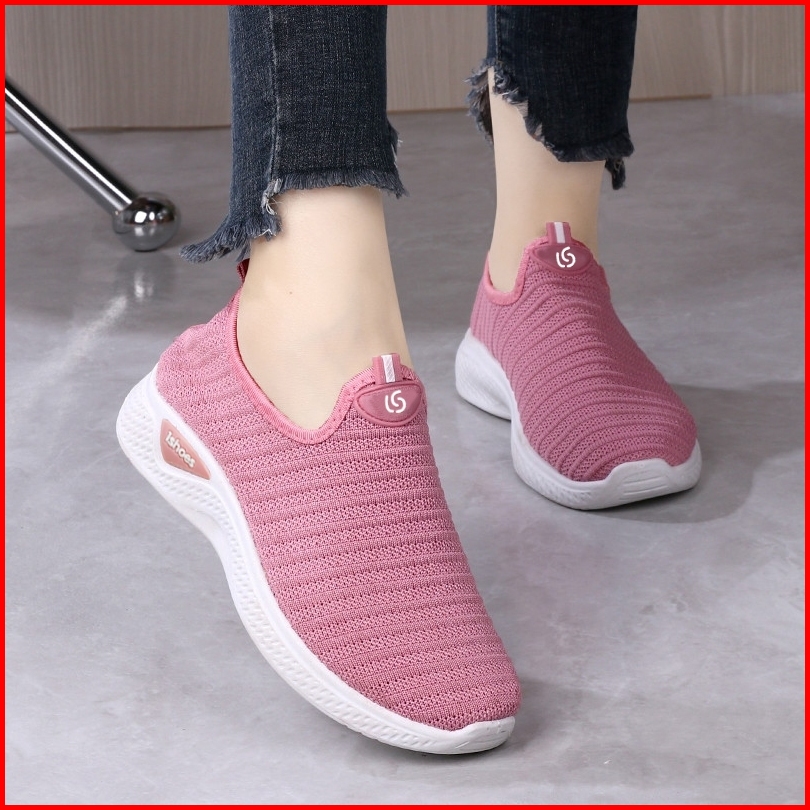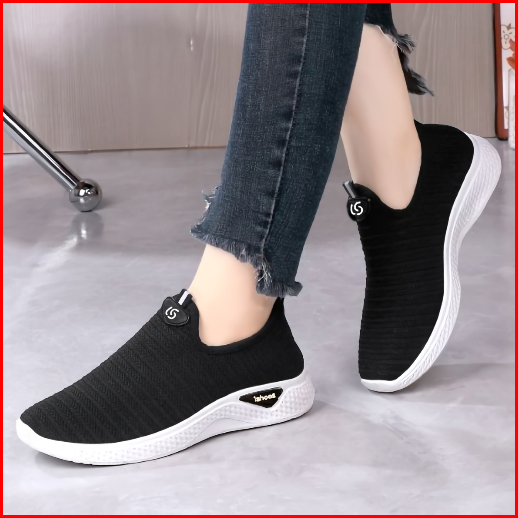 Nw075 Sepatu Slip On Wanita Size 36-42 Simple Polos Ringan Olahraga Gym Korea Sport Sepatu Casual