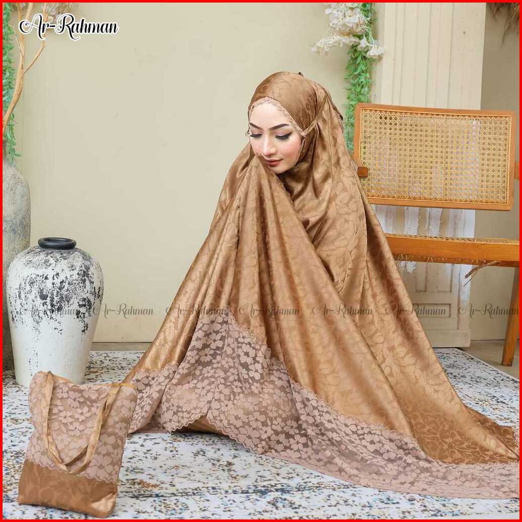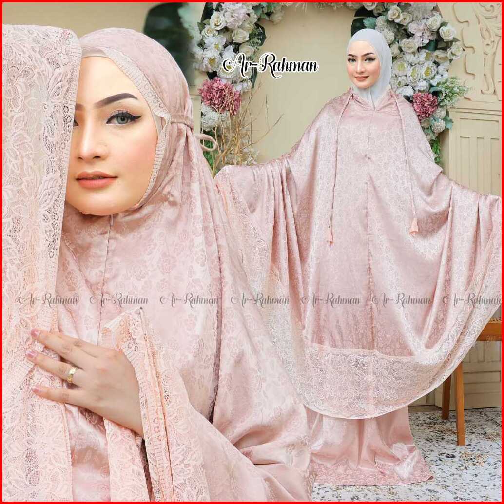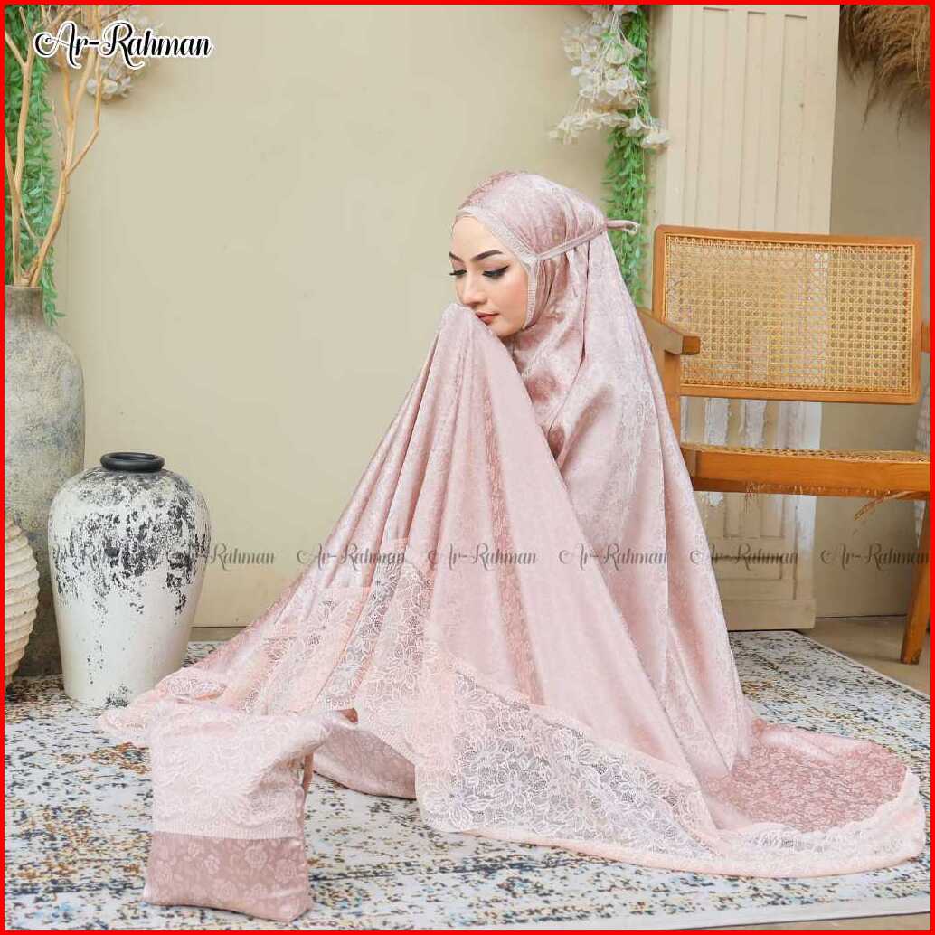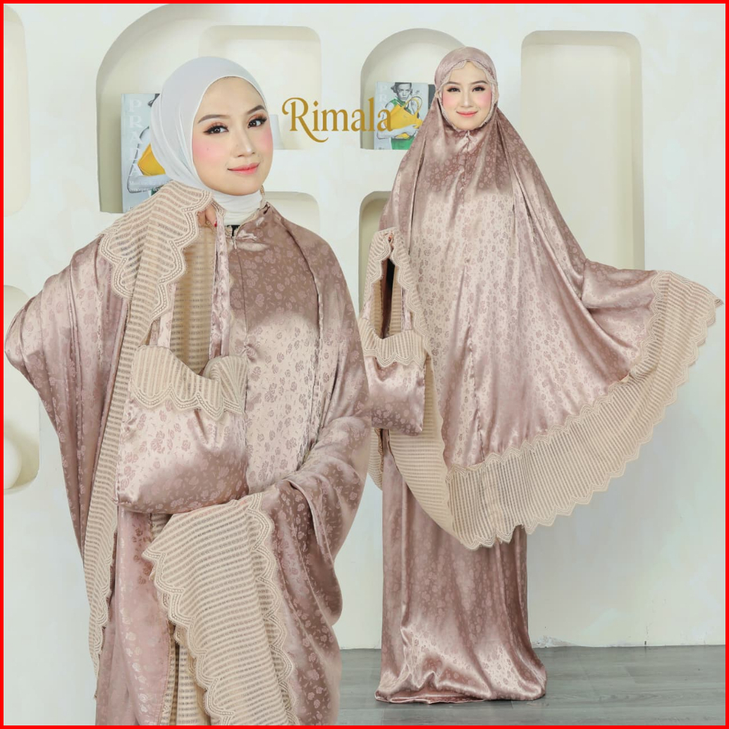 Rimala-mukena Dewasa Sutra Silk Jaguard Embos Mix Renda With Pouch Mewah Untuk Beribadah
