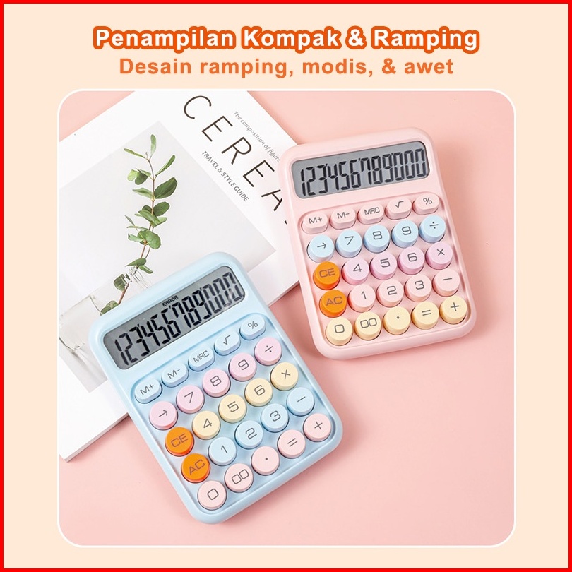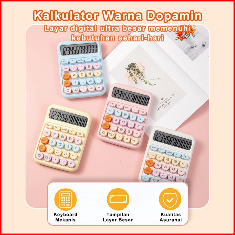 Kalkulator Warna 12digis Display Besar Keyboard Dot Mekanik Tombol Besar Kalkulator Elektronik Warna