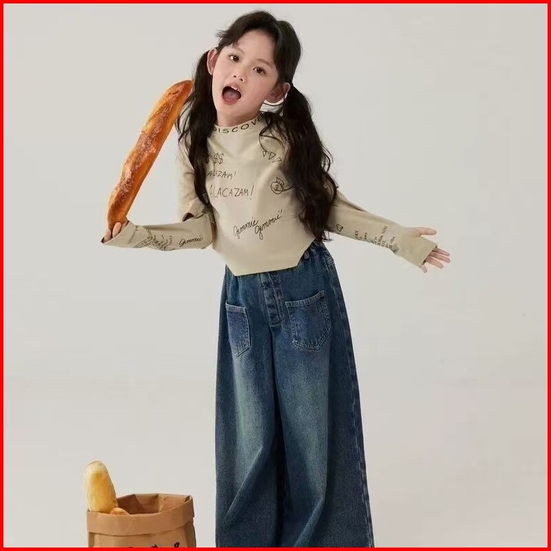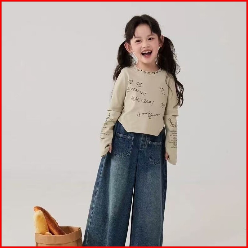 Setelan Jeans Anak Perempuan Oneset Anak Perempuan Set Anak Cewek Lengan Panjang Celana Jeans
