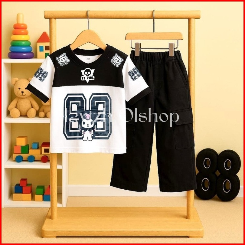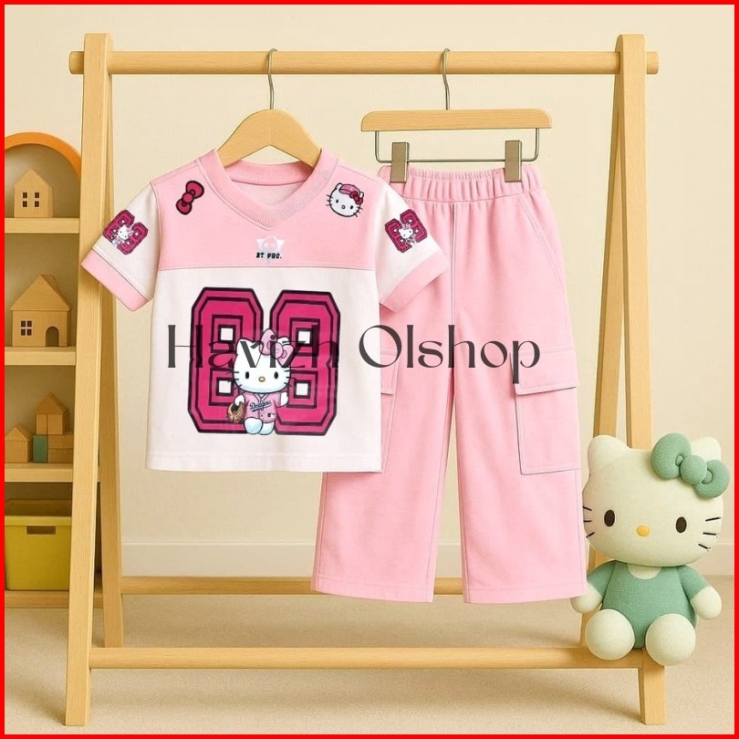 Setelan Anak Jersey Celana Cargo Motif Kuromi 3-12 Tahun Baju Anak Perempuan Set Anak Rugby