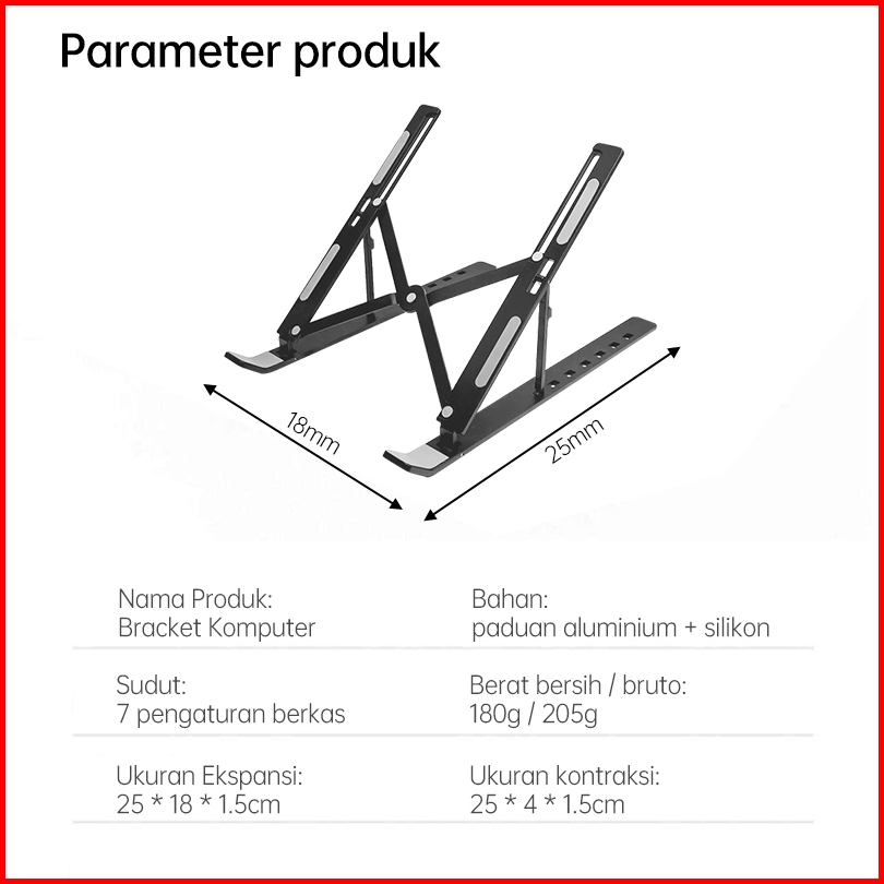 Olyps Laptop Stand Portable Aluminium Stand Holde Bisa Dilipat Anti Slip -7 Level Angle Adjustable