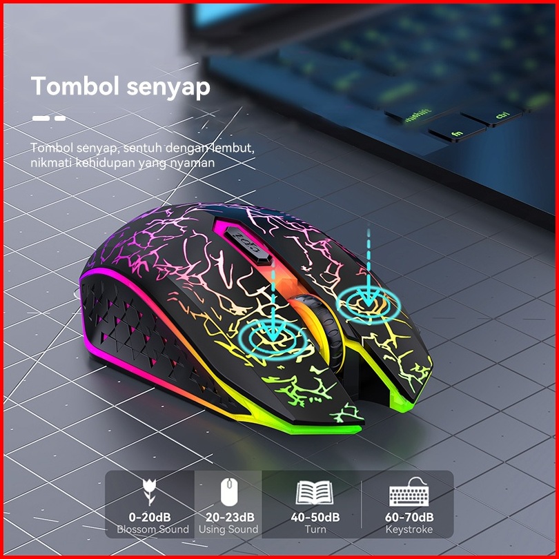 Olyps Mouse Gaming Rgb Wireless Bluetooth Silent Click Rechargeable Laptop Tanpa Kabel Optical 1600dpi