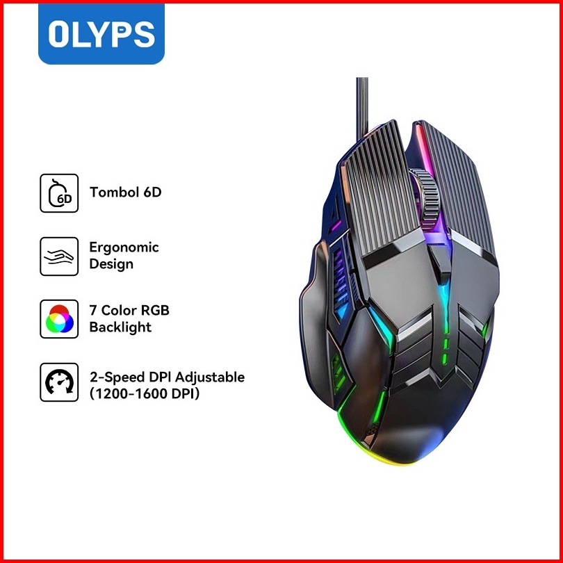Olyps Mouse Gaming Rgb Kabel Usb Portable Optical 1600dpi Ergonomic Desain Untuk Pc Laptop