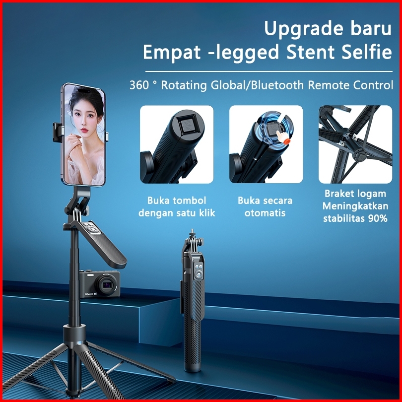 Toorea Tongsis Selfie Stick 180cm Empat Tripod Kualitas Tinggi Aluminium Berkualitas Tongsis Hp Tripod Bluetooth Remote
