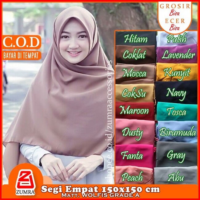 Promo Jilbab Syari Jumbo Segiempat Woolpeach Square Wolfis 150 X 150 Cm By Zumra