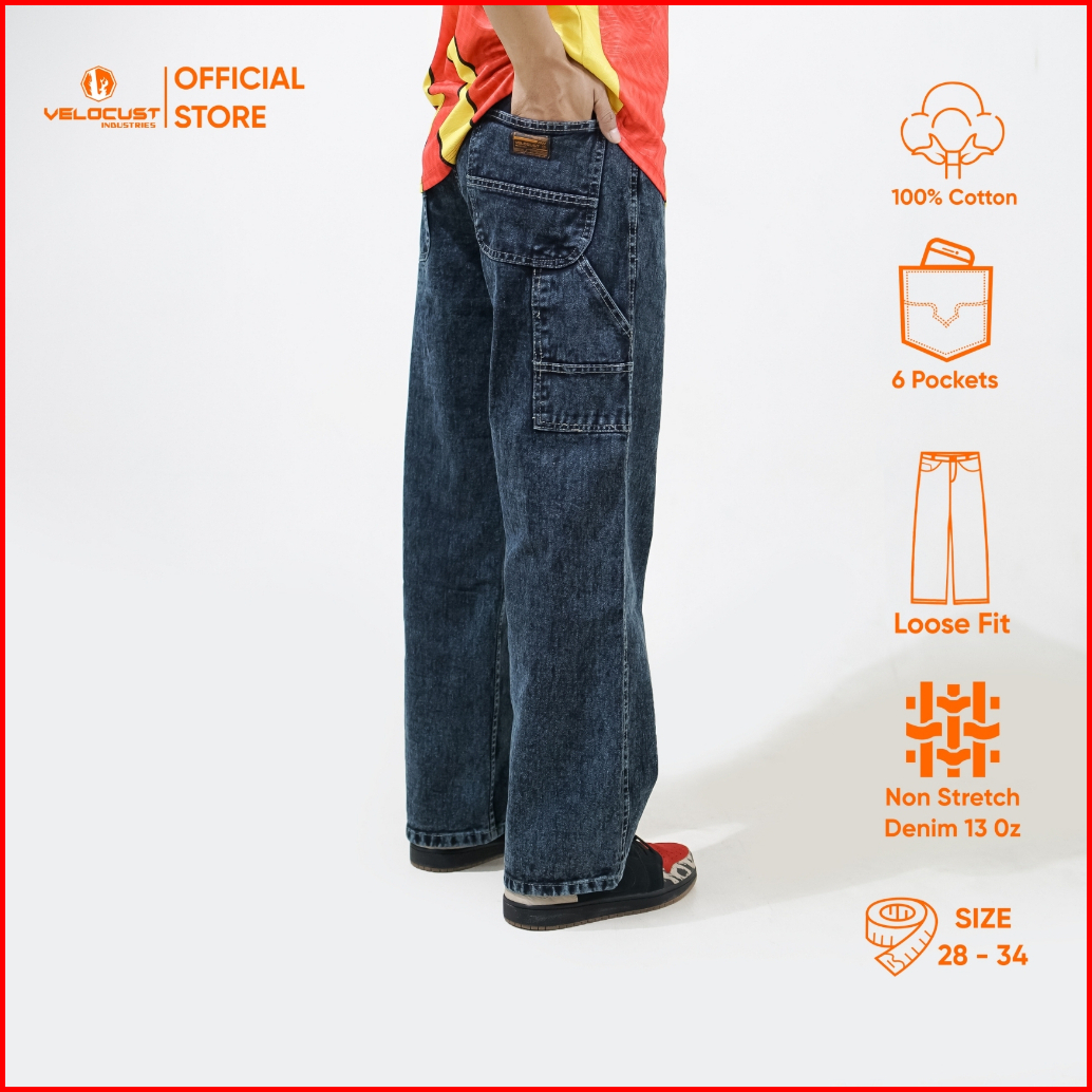 Velocust - Celana Panjang Jeans Carpenter Pants Dark Snow Wash