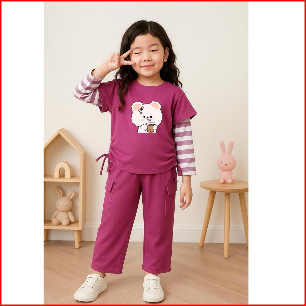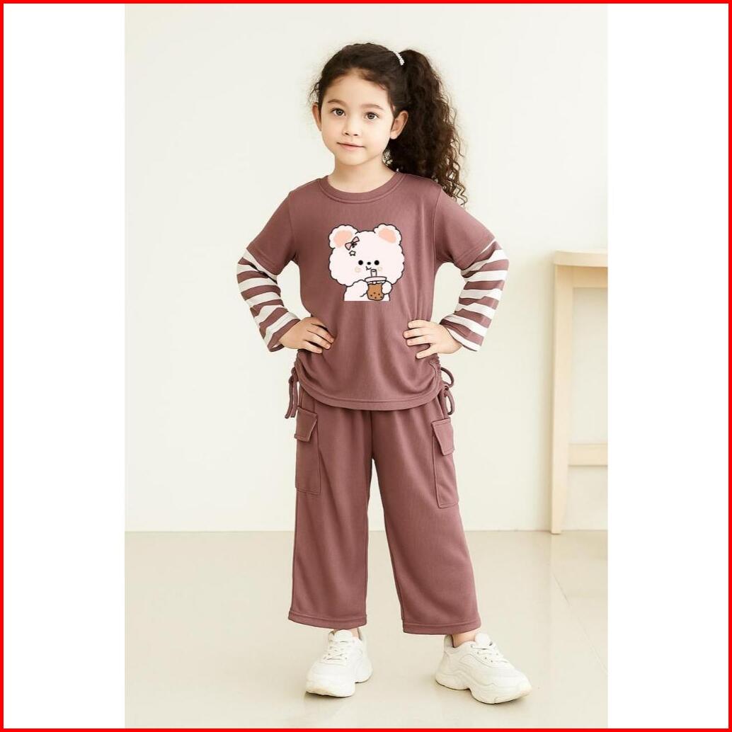 Cherylpick Setelan Knit Bearboba Cargo Anak Perempuan
