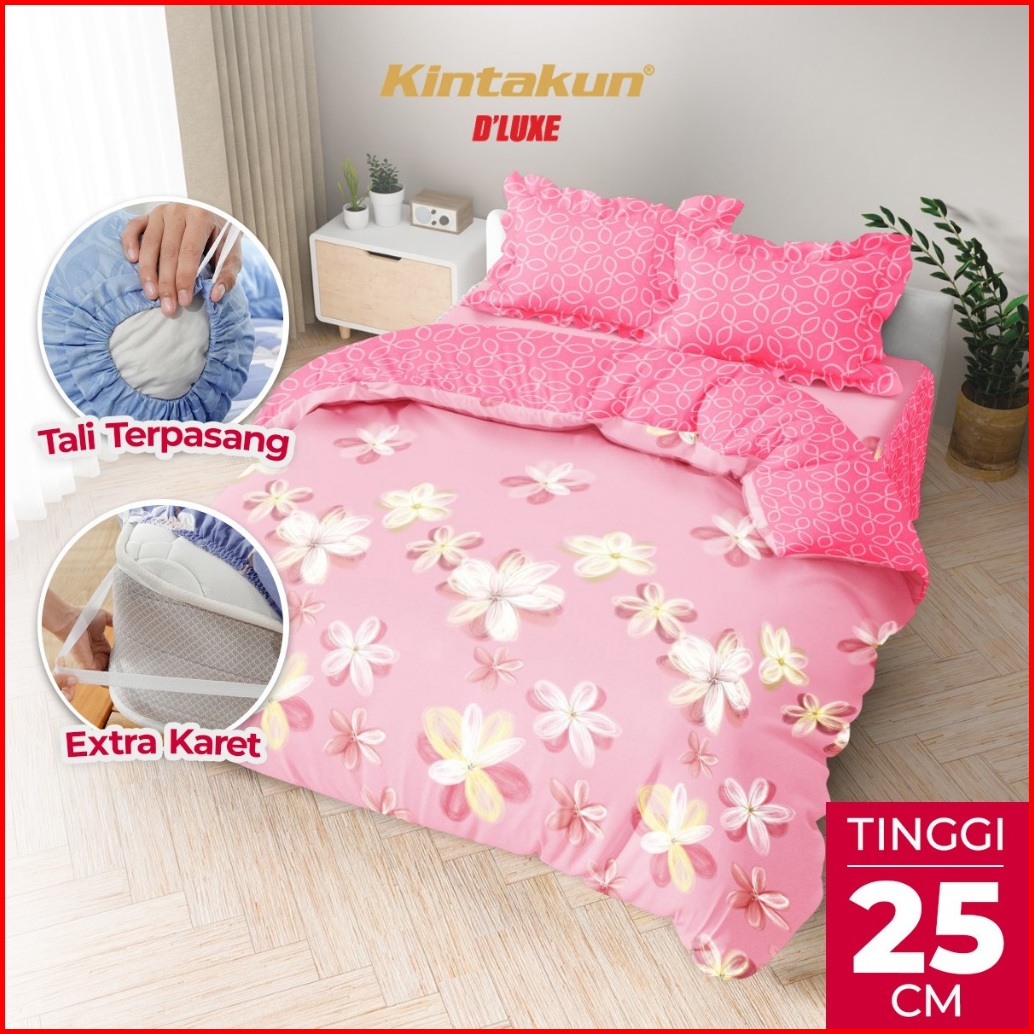 Kintakun Bed Cover Set Rumbai 160 180 Dluxe Carmelia Aesthetic Microtex Tinggi 25 Cm B2